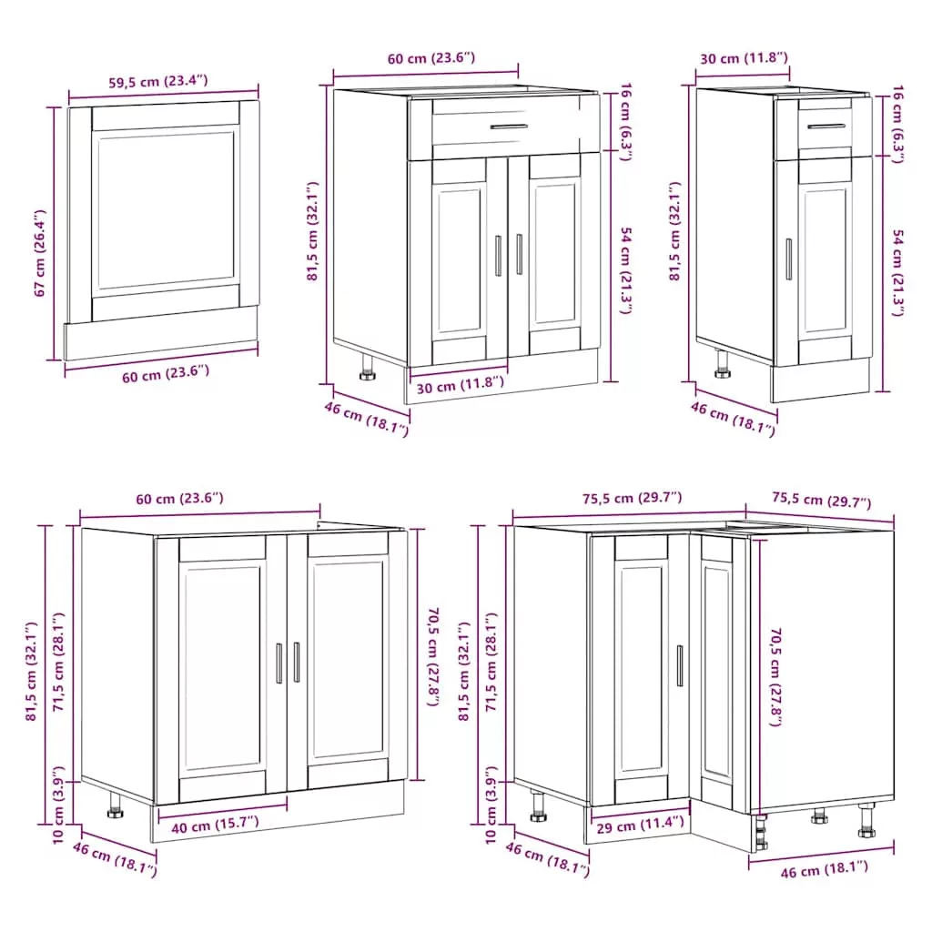 Ez az elegáns kialakítású, tizenegy részes konyhai szekrénygarnitúra optimalizálja konyhája terét, és bőséges tárolóhelyet biztosít személyes tárgyainak! Stabil és tartós anyag: A szerelt fa tartós és stabil anyag sima felülettel, amely ellenáll a nedvességnek, a vetemedésnek és a hasadásnak, így megbízható választás különféle célokhoz.Bőséges tárolóhely: A konyhaszekrénykészlet számos rekesszel rendelkezik, és elegendő helyet kínál tálak, tányérok, edények és egyéb konyhai eszközök tárolására.Állítható lábak: Az alsó szekrények állítható lábakkal rendelkeznek, amelyek magassága a konyha elrendezésének megfelelően állítható.Könnyen karbantartható: A sima felületnek köszönhetően ezek a konyhaszekrények könnyen tisztíthatók nedves ruhával, és kevesebb karbantartást igényelnek. Figyelem:A felborulás elkerülése érdekében ezt a terméket a mellékelt fali rögzítőeszközzel kell használni. Jó tudni:A falon belüli csavar(ok) és dugó(k) nem alaptartozékok. Keressen és használjon a falának megfelelő csavar(oka)t és dugó(ka)t. Ha bizonytalan, kérje szakember tanácsát. Gondosan olvassa el és kövesse a használati utasítás minden lépését.A munkalap, a mosogató és a csaptelep nem tartozéka a szállításnak.