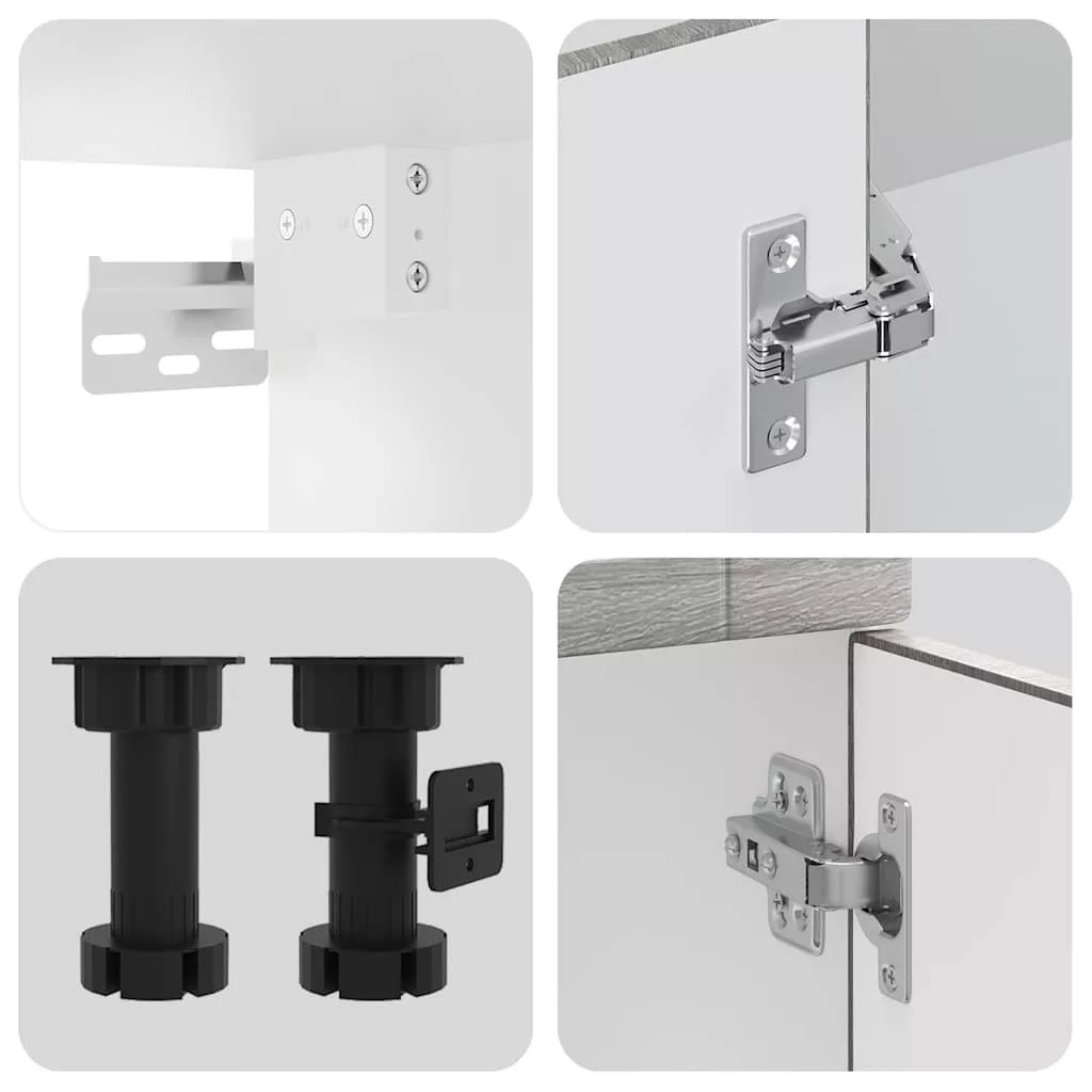 Ez az elegáns kialakítású, tizenegy részes konyhai szekrénygarnitúra optimalizálja konyhája terét, és bőséges tárolóhelyet biztosít személyes tárgyainak! Stabil és tartós anyag: A szerelt fa tartós és stabil anyag sima felülettel, amely ellenáll a nedvességnek, a vetemedésnek és a hasadásnak, így megbízható választás különféle célokhoz.Bőséges tárolóhely: A konyhaszekrénykészlet számos rekesszel rendelkezik, és elegendő helyet kínál tálak, tányérok, edények és egyéb konyhai eszközök tárolására.Állítható lábak: Az alsó szekrények állítható lábakkal rendelkeznek, amelyek magassága a konyha elrendezésének megfelelően állítható.Könnyen karbantartható: A sima felületnek köszönhetően ezek a konyhaszekrények könnyen tisztíthatók nedves ruhával, és kevesebb karbantartást igényelnek. Figyelem:A felborulás elkerülése érdekében ezt a terméket a mellékelt fali rögzítőeszközzel kell használni. Jó tudni:A falon belüli csavar(ok) és dugó(k) nem alaptartozékok. Keressen és használjon a falának megfelelő csavar(oka)t és dugó(ka)t. Ha bizonytalan, kérje szakember tanácsát. Gondosan olvassa el és kövesse a használati utasítás minden lépését.A munkalap, a mosogató és a csaptelep nem tartozéka a szállításnak.