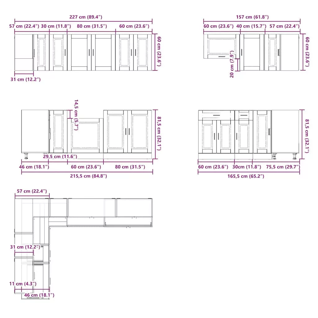 11 darabos konyhaszekrény szett Porto szürke sonoma műfa
