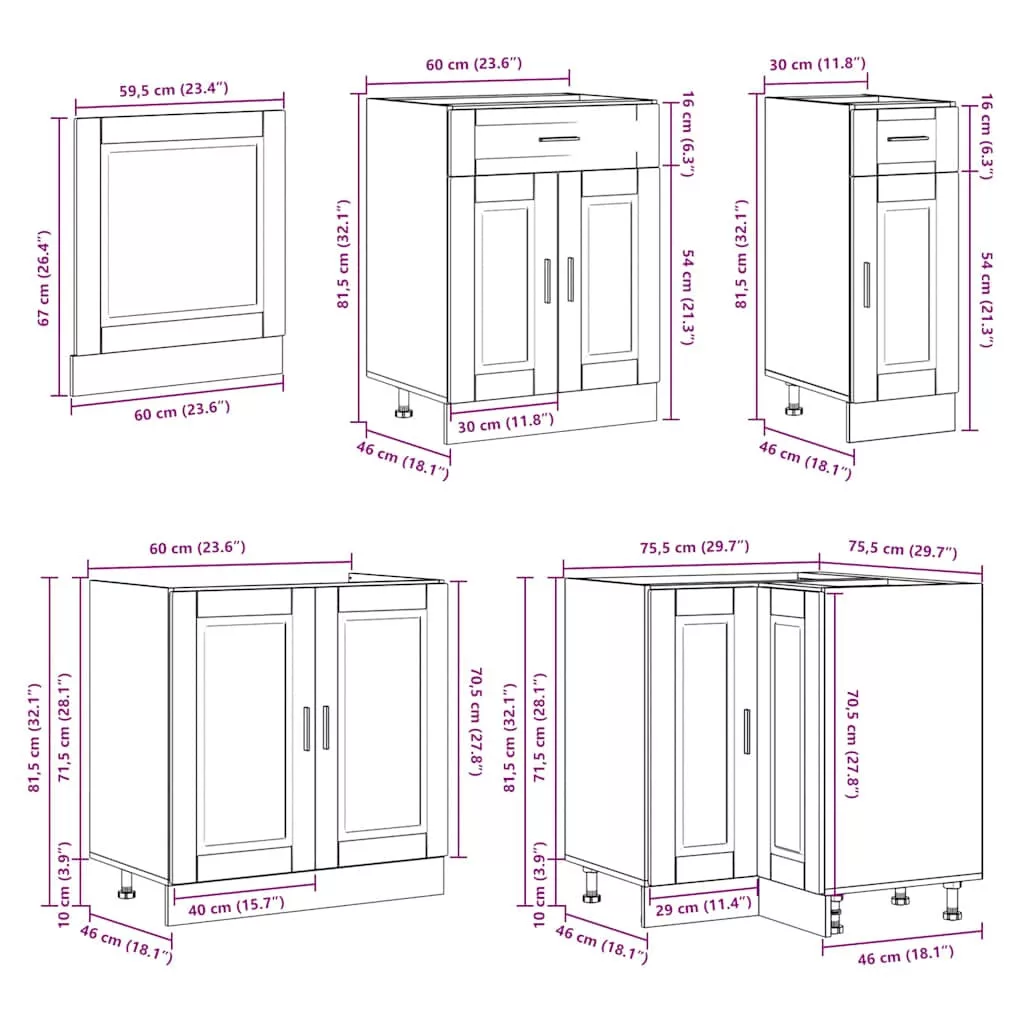 Ez az elegáns kialakítású, tizenegy részes konyhai szekrénygarnitúra optimalizálja konyhája terét, és bőséges tárolóhelyet biztosít személyes tárgyainak! Stabil és tartós anyag: A szerelt fa tartós és stabil anyag sima felülettel, amely ellenáll a nedvességnek, a vetemedésnek és a hasadásnak, így megbízható választás különféle célokhoz.Bőséges tárolóhely: A konyhaszekrénykészlet számos rekesszel rendelkezik, és elegendő helyet kínál tálak, tányérok, edények és egyéb konyhai eszközök tárolására.Állítható lábak: Az alsó szekrények állítható lábakkal rendelkeznek, amelyek magassága a konyha elrendezésének megfelelően állítható.Könnyen karbantartható: A sima felületnek köszönhetően ezek a konyhaszekrények könnyen tisztíthatók nedves ruhával, és kevesebb karbantartást igényelnek. Figyelem:A felborulás elkerülése érdekében ezt a terméket a mellékelt fali rögzítőeszközzel kell használni. Jó tudni:A falon belüli csavar(ok) és dugó(k) nem alaptartozékok. Keressen és használjon a falának megfelelő csavar(oka)t és dugó(ka)t. Ha bizonytalan, kérje szakember tanácsát. Gondosan olvassa el és kövesse a használati utasítás minden lépését.A munkalap, a mosogató és a csaptelep nem tartozéka a szállításnak.