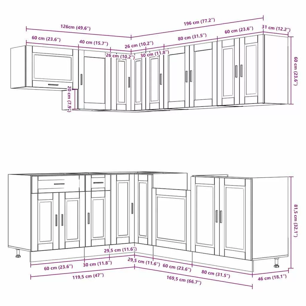 11 részes konyhaszekrény szett Porto kézműves tölgy mérnöki fa