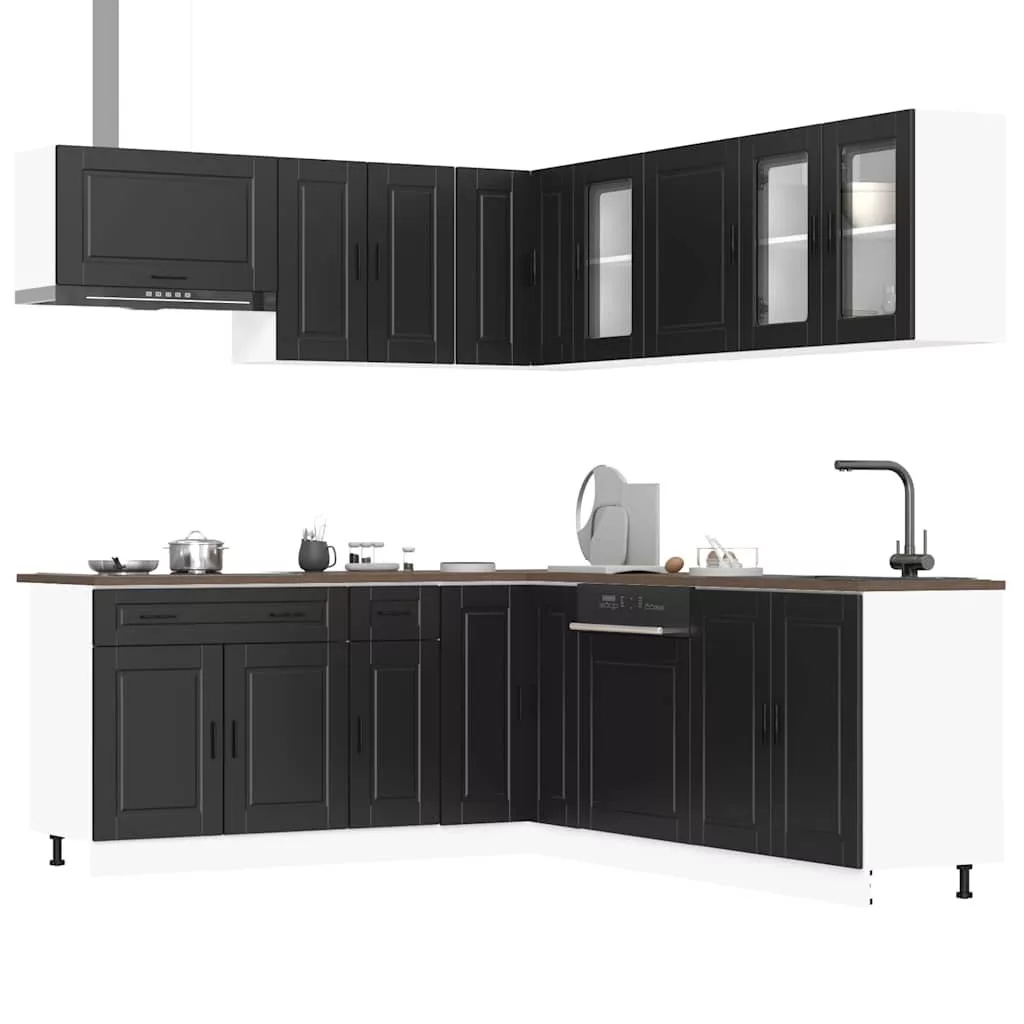 11 darabos konyhaszekrény szett Porto fekete színű műfa