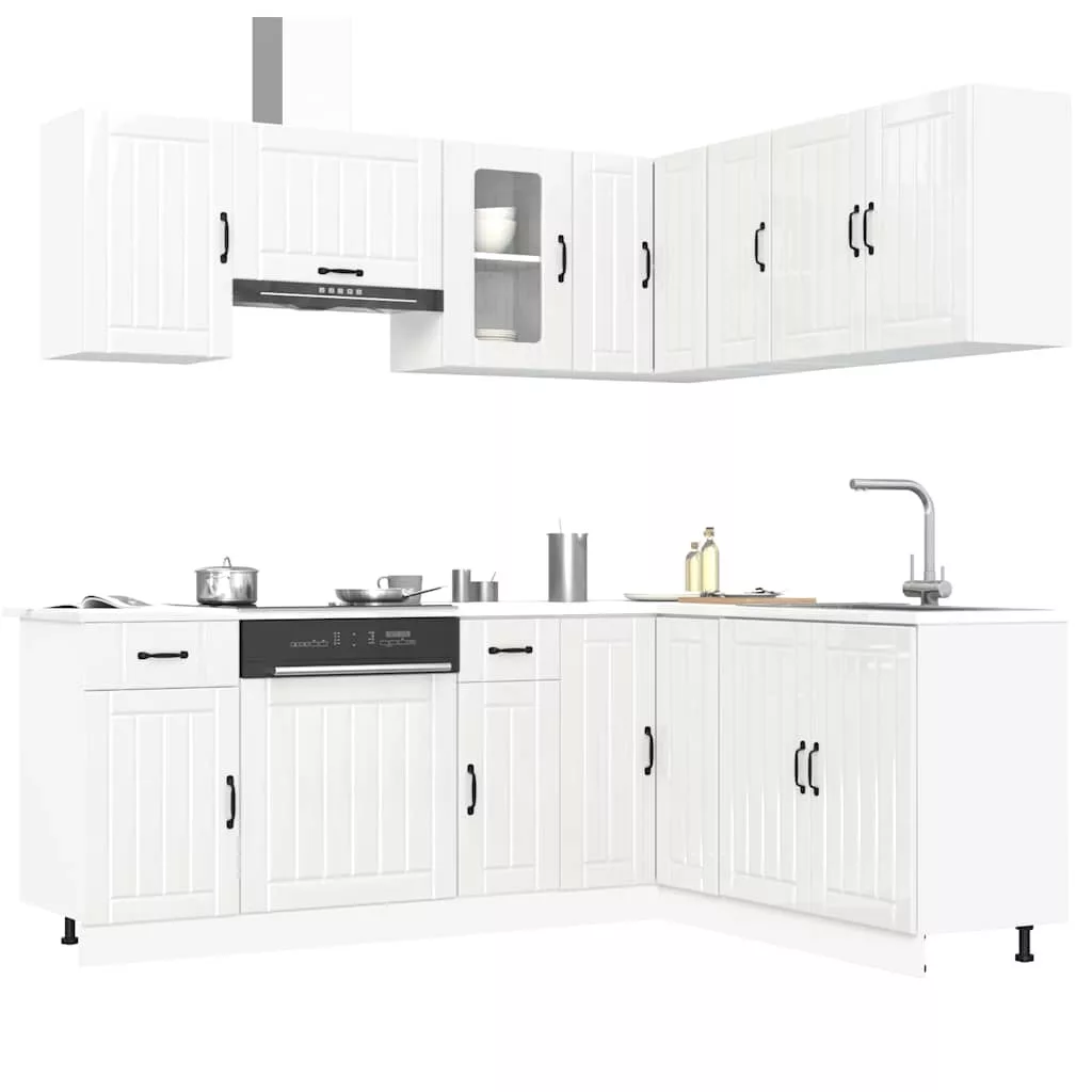 11 részes konyhai szekrény szett Kalmar fényes fehér műfa