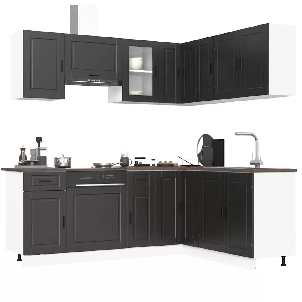 11 darabos konyhaszekrény szett Porto fekete színű műfa