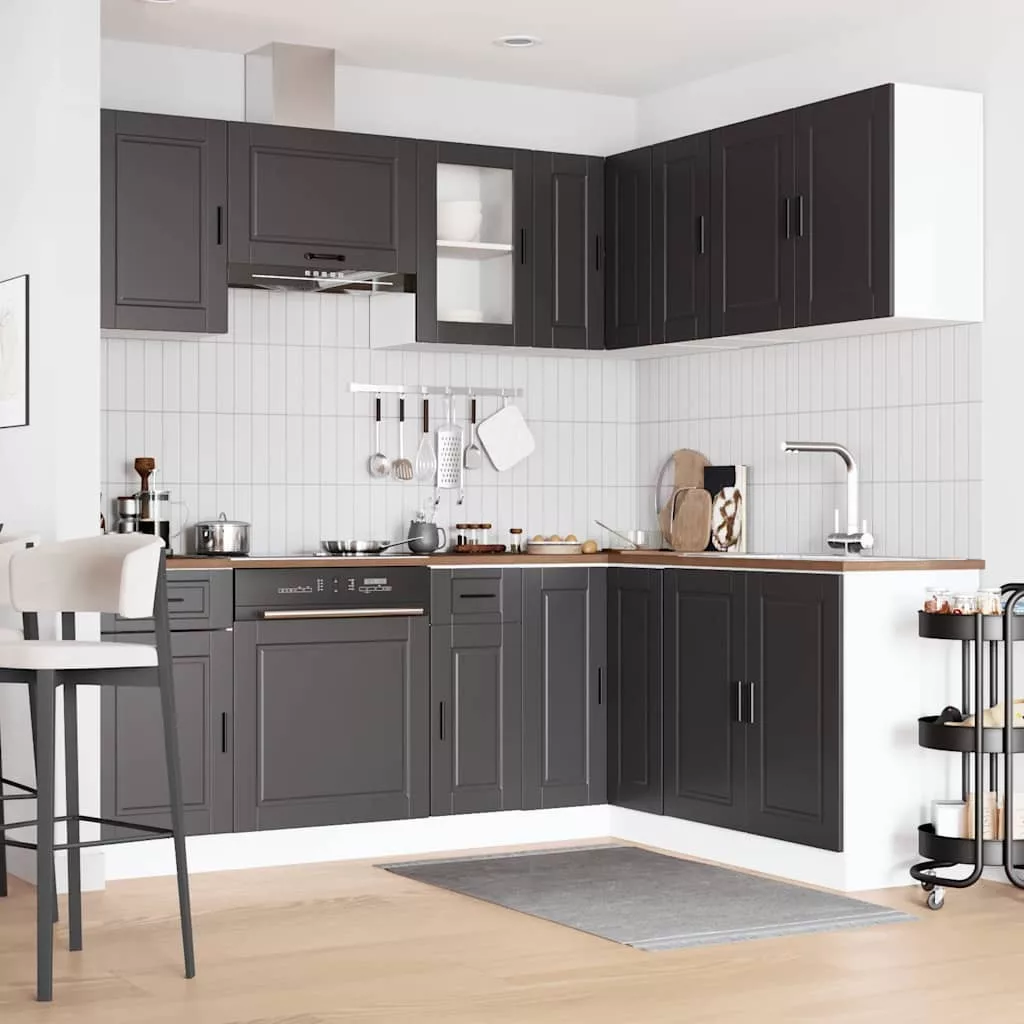 Ez az elegáns kialakítású, tizenegy részes konyhai szekrénygarnitúra optimalizálja konyhája terét, és bőséges tárolóhelyet biztosít személyes tárgyainak! Stabil és tartós anyag: A szerelt fa tartós és stabil anyag sima felülettel, amely ellenáll a nedvességnek, a vetemedésnek és a hasadásnak, így megbízható választás különféle célokhoz.Bőséges tárolóhely: A konyhaszekrénykészlet számos rekesszel rendelkezik, és elegendő helyet kínál tálak, tányérok, edények és egyéb konyhai eszközök tárolására.Állítható lábak: Az alsó szekrények állítható lábakkal rendelkeznek, amelyek magassága a konyha elrendezésének megfelelően állítható.Könnyen karbantartható: A sima felületnek köszönhetően ezek a konyhaszekrények könnyen tisztíthatók nedves ruhával, és kevesebb karbantartást igényelnek. Figyelem:A felborulás elkerülése érdekében ezt a terméket a mellékelt fali rögzítőeszközzel kell használni. Jó tudni:A falon belüli csavar(ok) és dugó(k) nem alaptartozékok. Keressen és használjon a falának megfelelő csavar(oka)t és dugó(ka)t. Ha bizonytalan, kérje szakember tanácsát. Gondosan olvassa el és kövesse a használati utasítás minden lépését.A munkalap, a mosogató és a csaptelep nem tartozéka a szállításnak.