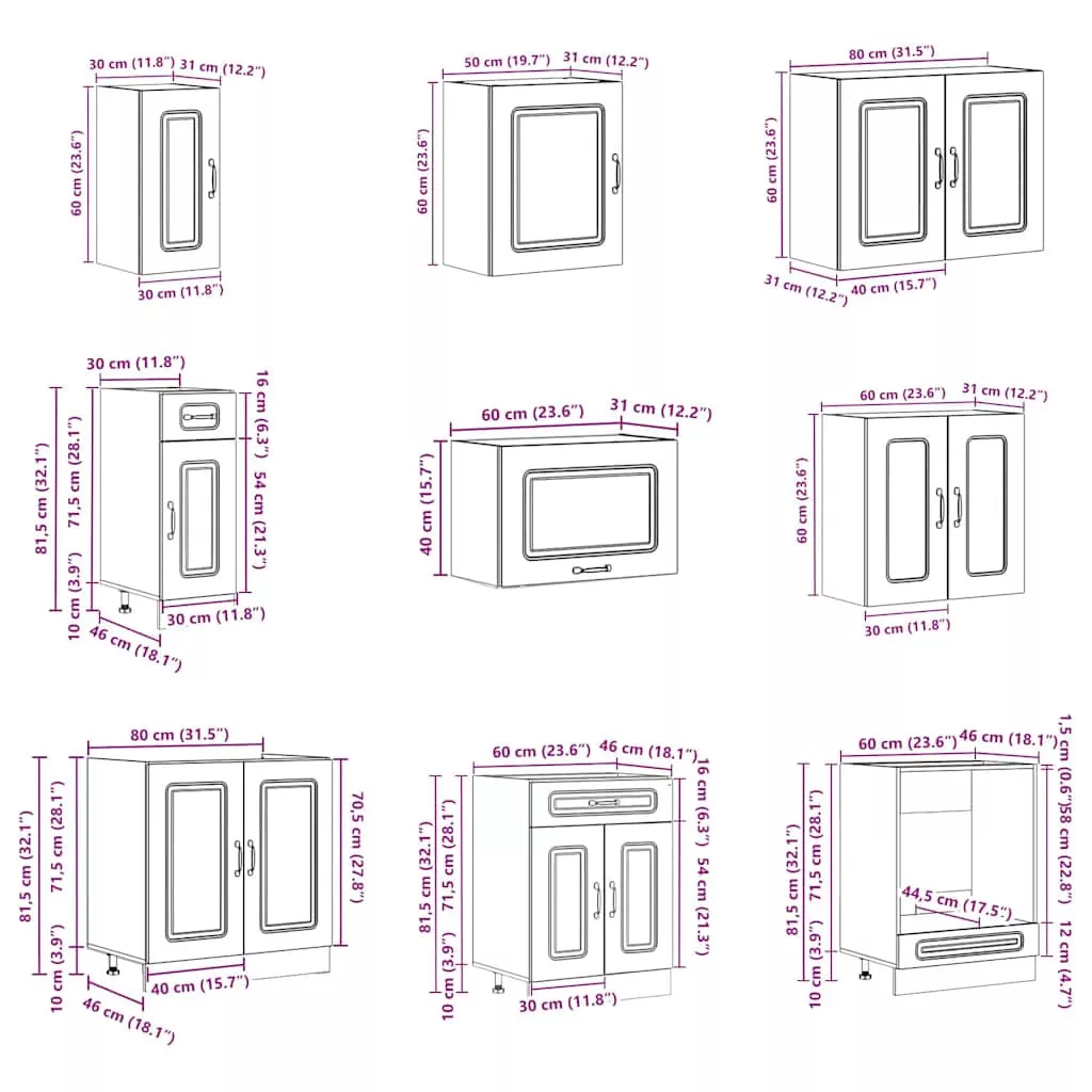 Ez az elegáns kialakítású, tizennégy részes konyhai szekrénygarnitúra optimalizálja konyhája terét, és bőséges tárolóhelyet biztosít személyes tárgyainak! Stabil és tartós anyag: A szerelt fa tartós és stabil anyag sima felülettel, amely ellenáll a nedvességnek, a vetemedésnek és a hasadásnak, így megbízható választás különféle célokhoz.Bőséges tárolóhely: A konyhaszekrénykészlet számos rekesszel rendelkezik, és elegendő helyet kínál tálak, tányérok, edények és egyéb konyhai eszközök tárolására.Állítható lábak: Az alsó szekrények állítható lábakkal rendelkeznek, amelyek magassága a konyha elrendezésének megfelelően állítható.Könnyen karbantartható: A sima felületnek köszönhetően ezek a konyhaszekrények könnyen tisztíthatók nedves ruhával, és kevesebb karbantartást igényelnek. Figyelem:A felborulás elkerülése érdekében ezt a terméket a mellékelt fali rögzítőeszközzel kell használni. Jó tudni:A falon belüli csavar(ok) és dugó(k) nem alaptartozékok. Keressen és használjon a falának megfelelő csavar(oka)t és dugó(ka)t. Ha bizonytalan, kérje szakember tanácsát. Gondosan olvassa el és kövesse a használati utasítás minden lépését.A munkalap, a mosogató és a csaptelep nem tartozéka a szállításnak.