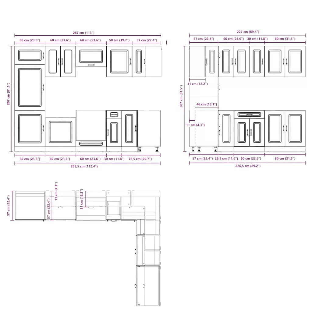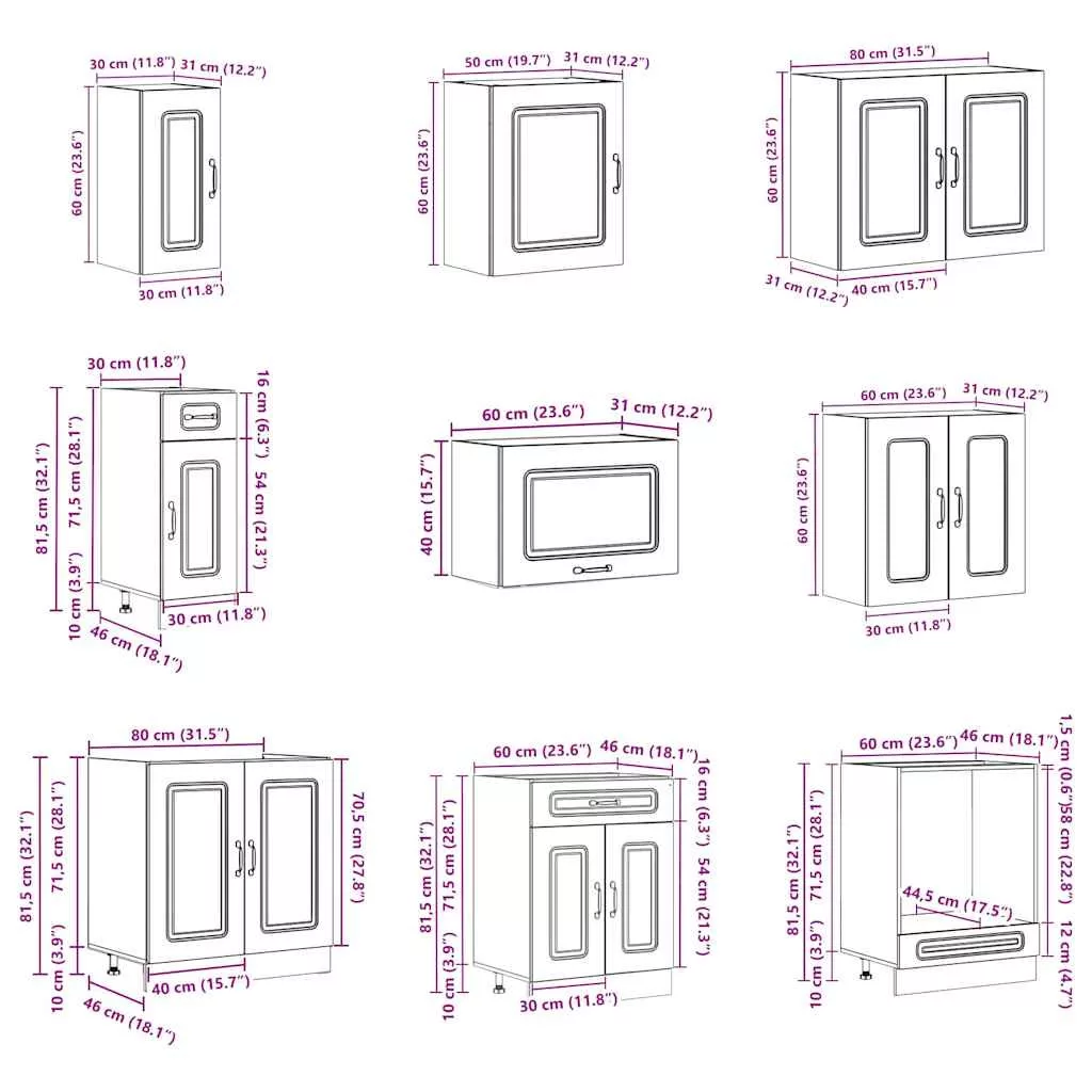 Ez a 14 darabos konyhaszekrény-garnitúra elegáns kialakításával optimalizálja a konyha terét, és bőséges tárolóhelyet biztosít személyes tárgyainak! Stabil és tartós anyag: A mesterséges fa tartós és stabil anyag, sima felülettel, amely ellenáll a nedvességnek, a vetemedésnek és a repedésnek, így megbízható választás számos projekthez.Bőséges tárolóhely: A konyhaszekrény-garnitúra számos rekesszel rendelkezik, és elegendő helyet kínál tálak, tányérok, edények és egyéb konyhai eszközök tárolására.Állítható lábak: Az alsó szekrények állítható lábakkal rendelkeznek, amelyek magassága a konyha elrendezéséhez igazítható.Könnyen karbantartható: Sima felületüknek köszönhetően ezek a konyhaszekrények könnyen tisztíthatók nedves ruhával, és kevesebb karbantartást igényelnek. Figyelmeztetés:A terméket egy munkalap. Jó tudni:A falon belüli csavar(ok) és tipli(k) nem tartozék(ok). Keressen és használjon a falához megfelelő csavar(oka)t és tipli(k)at. Ha bizonytalan, kérjen szakember tanácsát. Olvassa el és kövesse figyelmesen az utasítás minden lépését.A munkalap, a mosogató és a csaptelep nem része a szállítmánynak.
