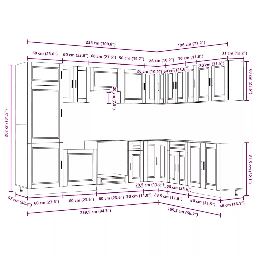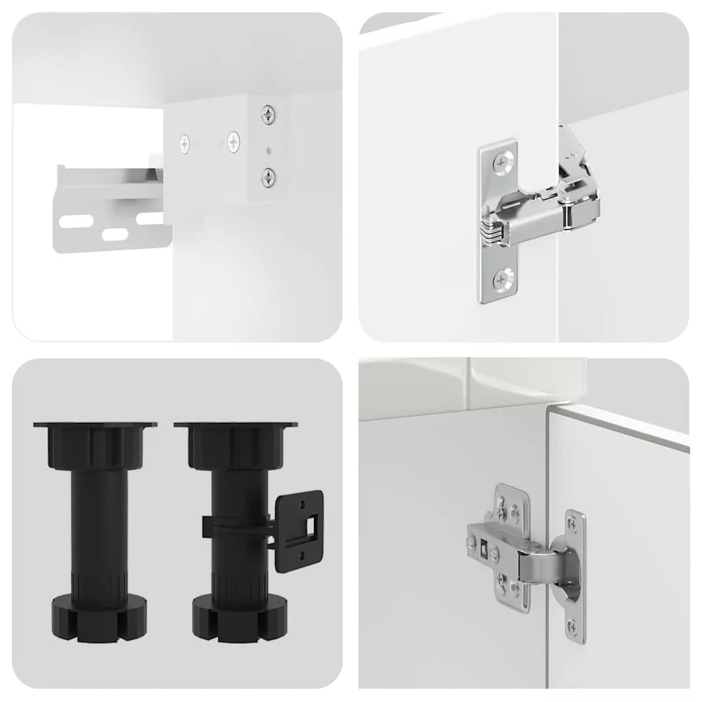 Ez a 14 darabos konyhaszekrény-garnitúra elegáns kialakításával optimalizálja a konyha terét, és bőséges tárolóhelyet biztosít személyes tárgyainak! Stabil és tartós anyag: A mesterséges fa tartós és stabil anyag, sima felülettel, amely ellenáll a nedvességnek, a vetemedésnek és a repedésnek, így megbízható választás számos projekthez.Bőséges tárolóhely: A konyhaszekrény-garnitúra számos rekesszel rendelkezik, és elegendő helyet kínál tálak, tányérok, edények és egyéb konyhai eszközök tárolására.Állítható lábak: Az alsó szekrények állítható lábakkal rendelkeznek, amelyek magassága a konyha elrendezéséhez igazítható.Könnyen karbantartható: Sima felületüknek köszönhetően ezek a konyhaszekrények könnyen tisztíthatók nedves ruhával, és kevesebb karbantartást igényelnek. Figyelmeztetés:A terméket egy munkalap. Jó tudni:A falon belüli csavar(ok) és tipli(k) nem tartozék(ok). Keressen és használjon a falához megfelelő csavar(oka)t és tipli(k)at. Ha bizonytalan, kérjen szakember tanácsát. Olvassa el és kövesse figyelmesen az utasítás minden lépését.A munkalap, a mosogató és a csaptelep nem része a szállítmánynak.