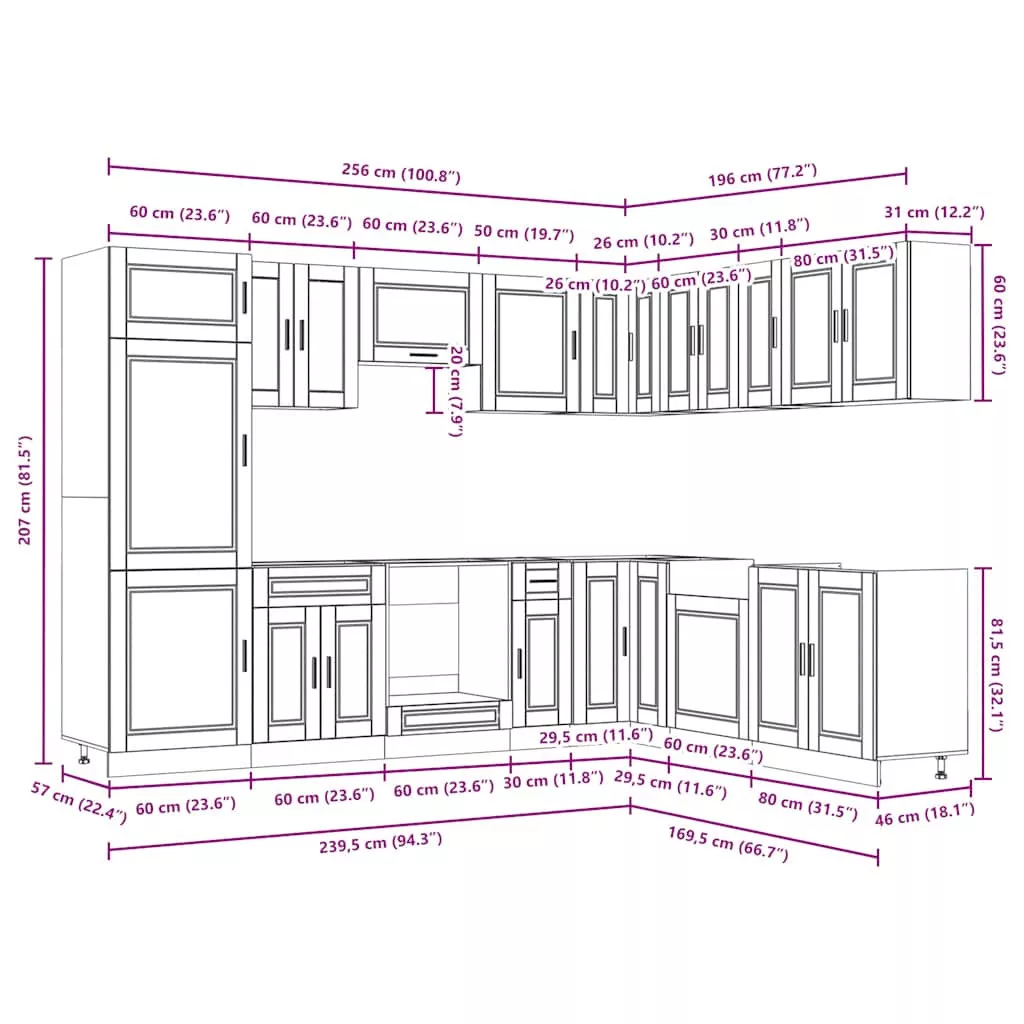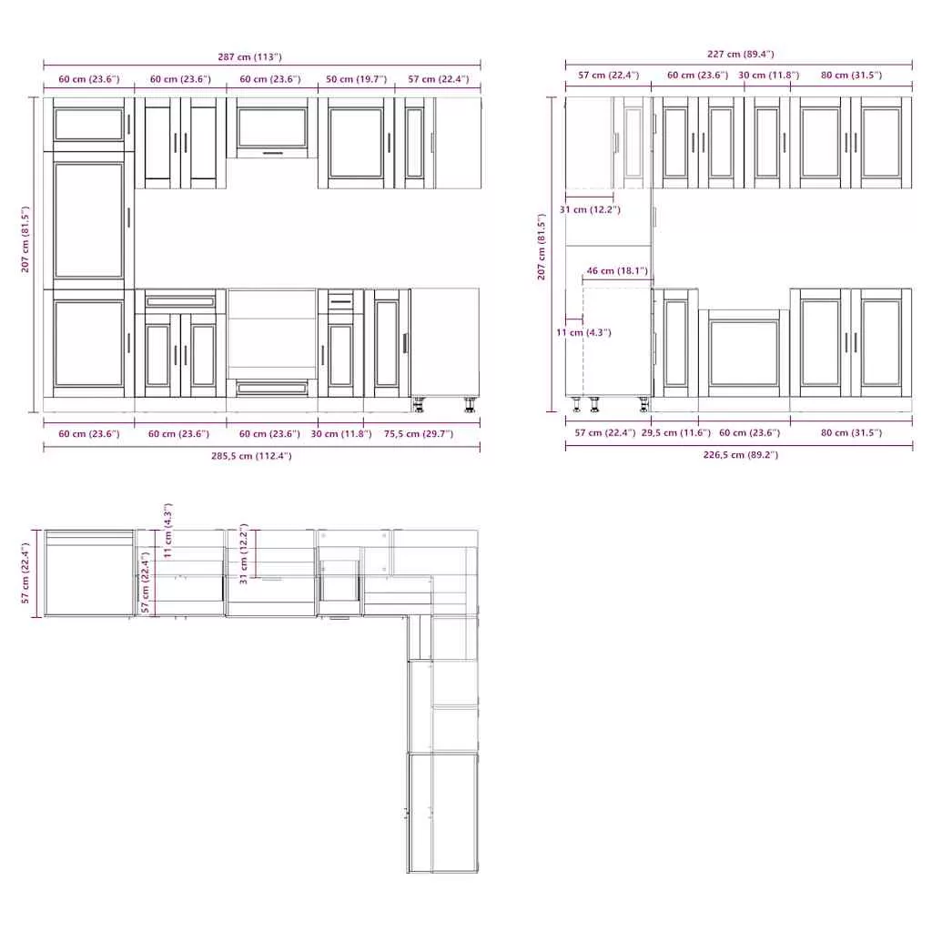 14 darabos konyhaszekrény szett Porto szürke sonoma műfa