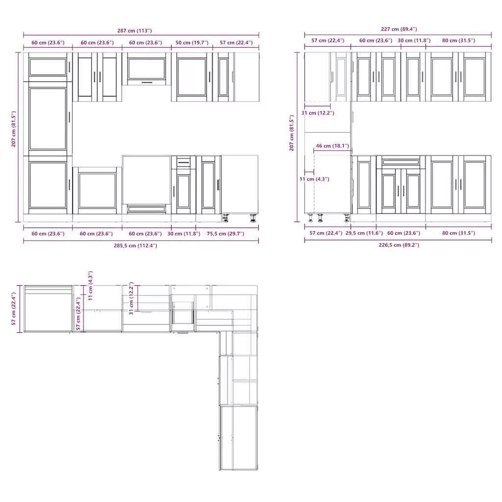 Ez a 14 darabos konyhaszekrény-garnitúra elegáns kialakításával optimalizálja a konyha terét, és bőséges tárolóhelyet biztosít személyes tárgyainak! Stabil és tartós anyag: A mesterséges fa tartós és stabil anyag, sima felülettel, amely ellenáll a nedvességnek, a vetemedésnek és a repedésnek, így megbízható választás számos projekthez.Bőséges tárolóhely: A konyhaszekrény-garnitúra számos rekesszel rendelkezik, és elegendő helyet kínál tálak, tányérok, edények és egyéb konyhai eszközök tárolására.Állítható lábak: Az alsó szekrények állítható lábakkal rendelkeznek, amelyek magassága a konyha elrendezéséhez igazítható.Könnyen karbantartható: Sima felületüknek köszönhetően ezek a konyhaszekrények könnyen tisztíthatók nedves ruhával, és kevesebb karbantartást igényelnek. Figyelmeztetés:A terméket egy munkalap. Jó tudni:A falon belüli csavar(ok) és tipli(k) nem tartozék(ok). Keressen és használjon a falához megfelelő csavar(oka)t és tipli(k)at. Ha bizonytalan, kérjen szakember tanácsát. Olvassa el és kövesse figyelmesen az utasítás minden lépését.A munkalap, a mosogató és a csaptelep nem része a szállítmánynak.