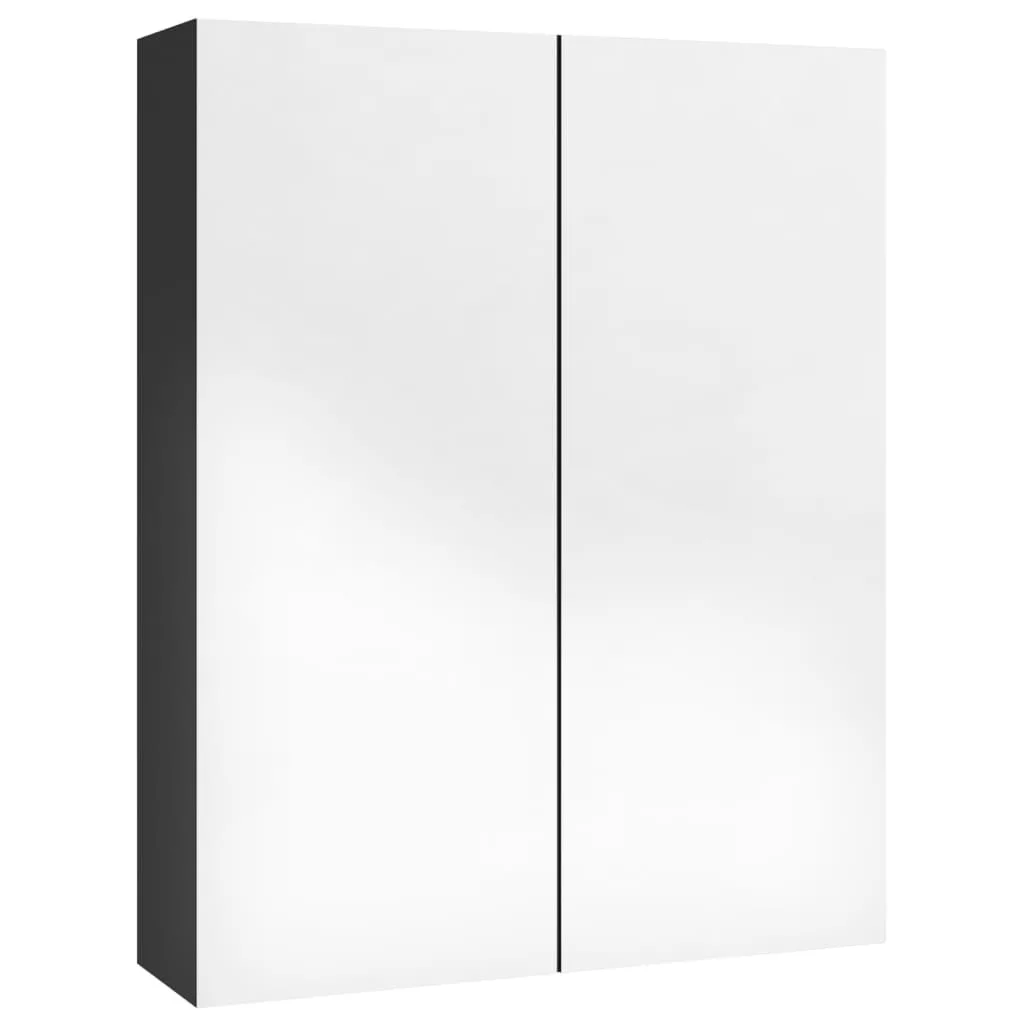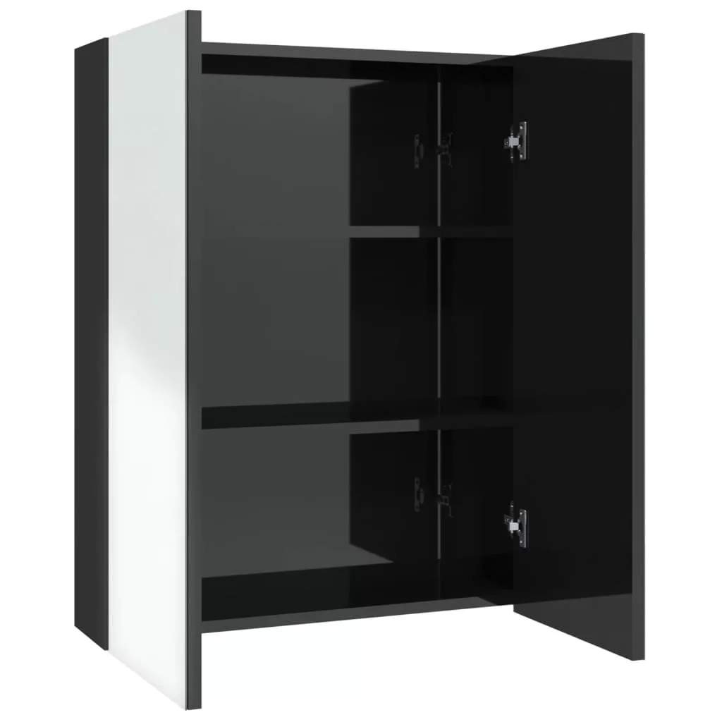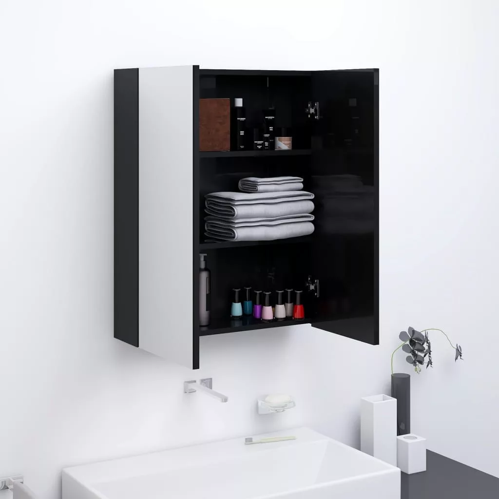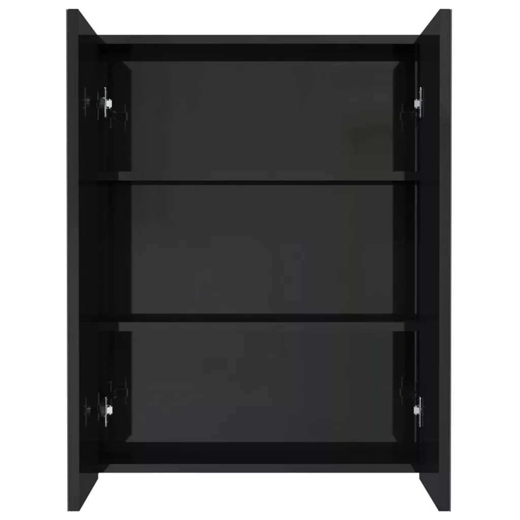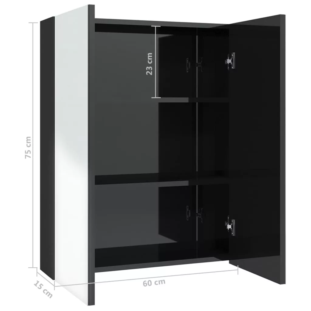 fényes fekete MDF tükrös fürdőszobaszekrény 60 x 15 x 75 cm