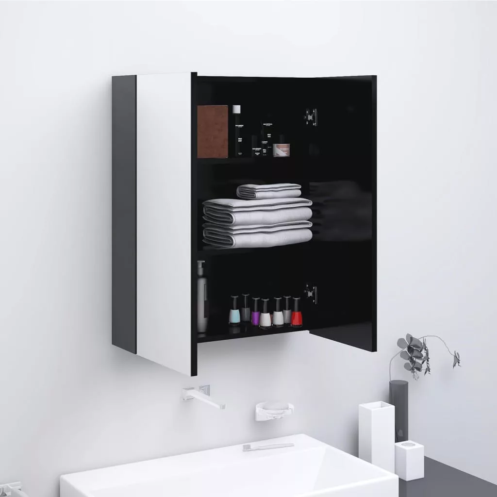 antracitszürke MDF tükrös fürdőszobaszekrény 60 x 15 x 75 cm