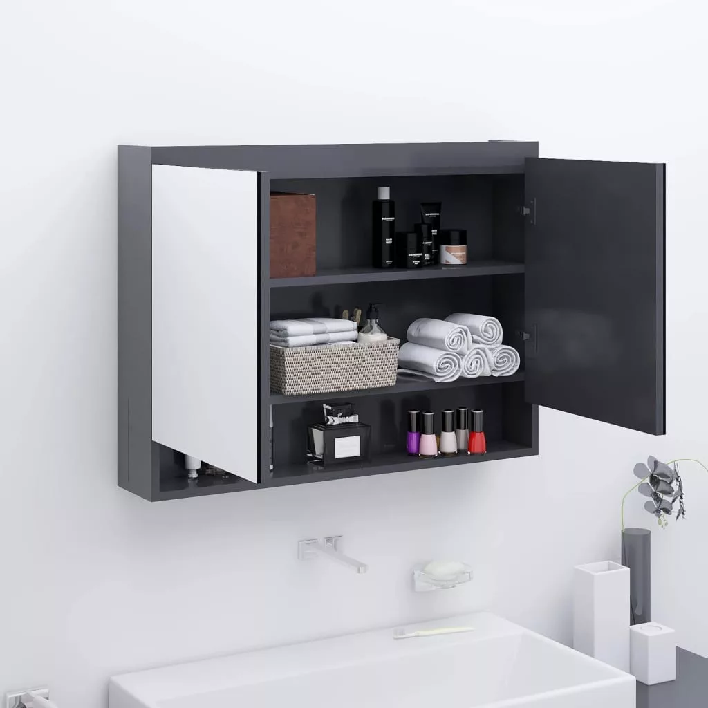 szürke MDF tükrös fürdőszobaszekrény 80 x 15 x 60 cm