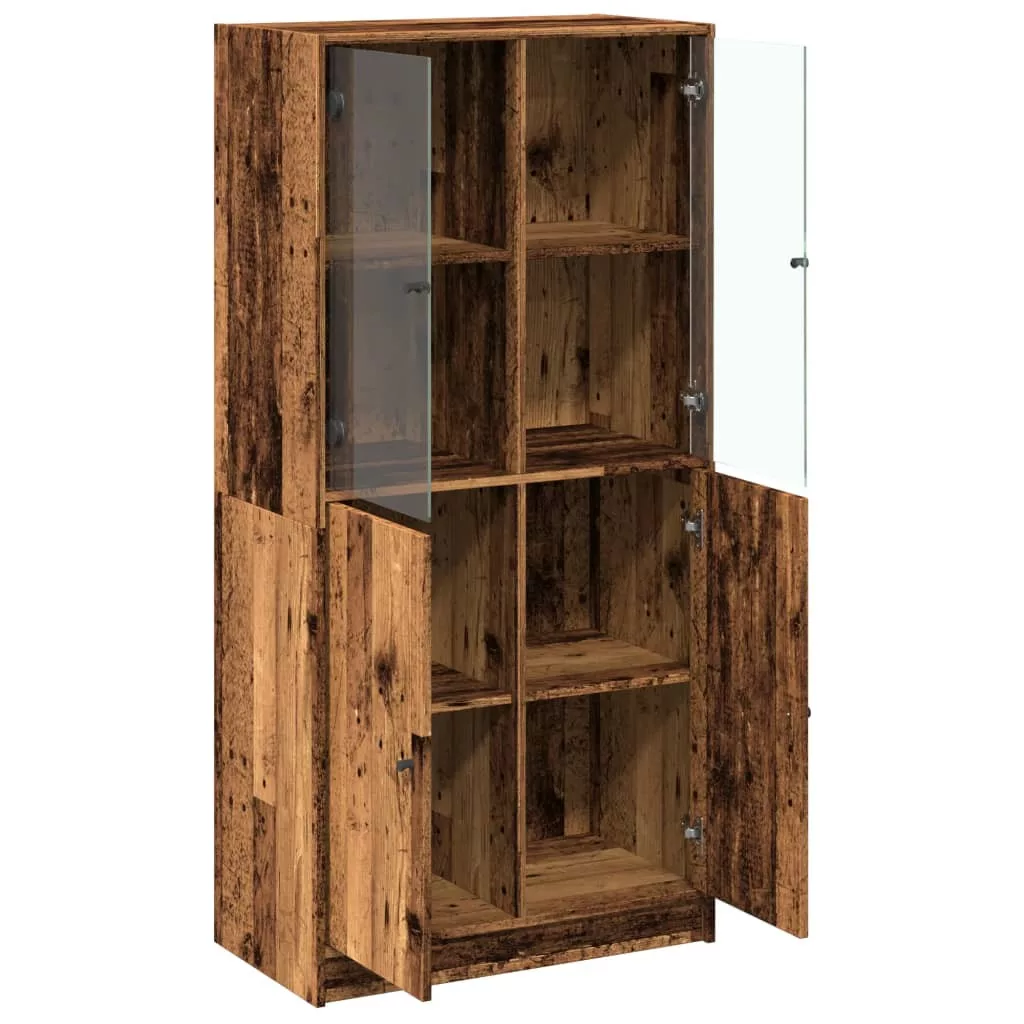 antik fa színű szerelt fa magasszekrény ajtókkal 68x37x142 cm