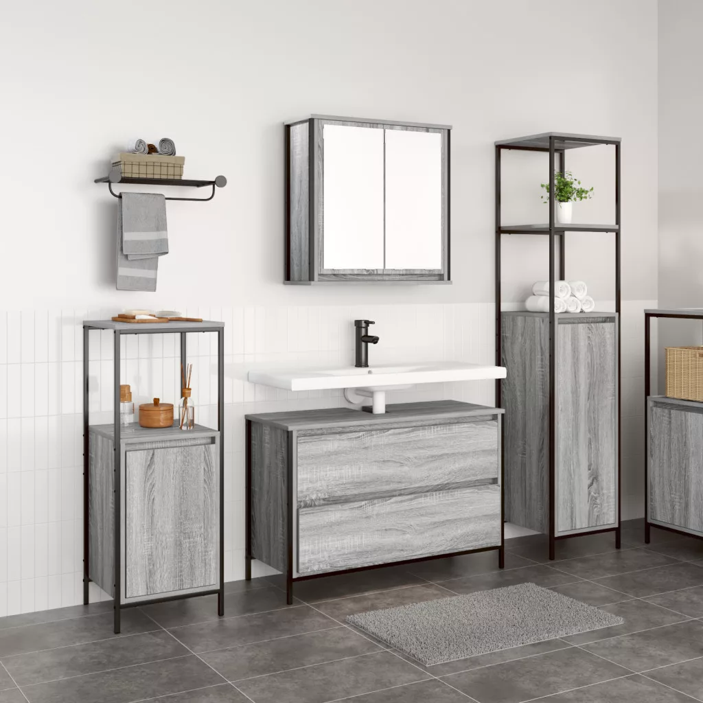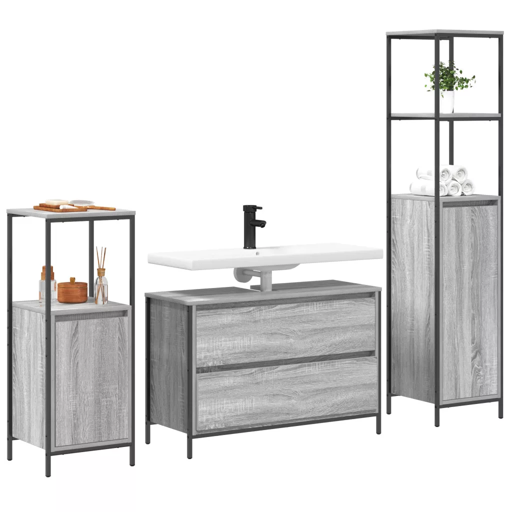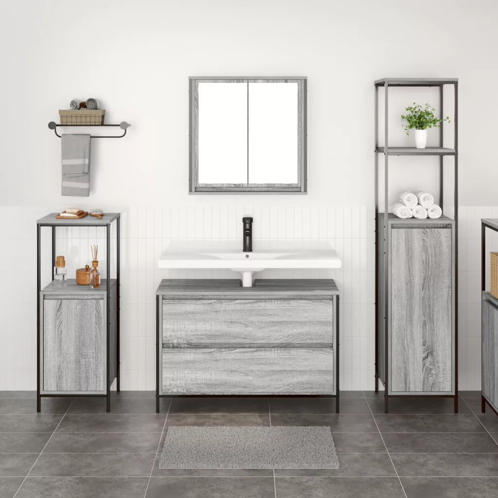 3 darabos fürdőszobai bútor szett szürke sonoma mérnöki fa