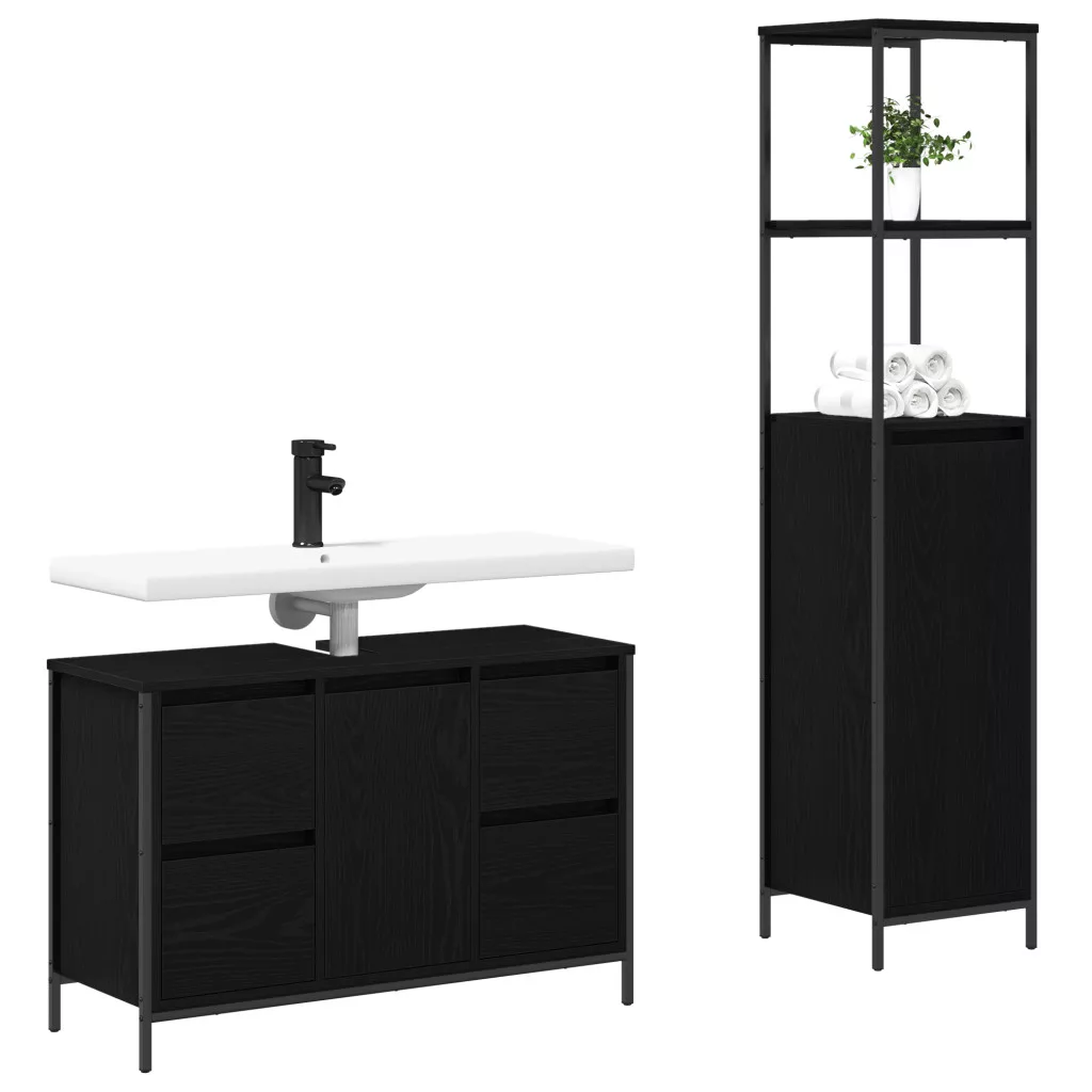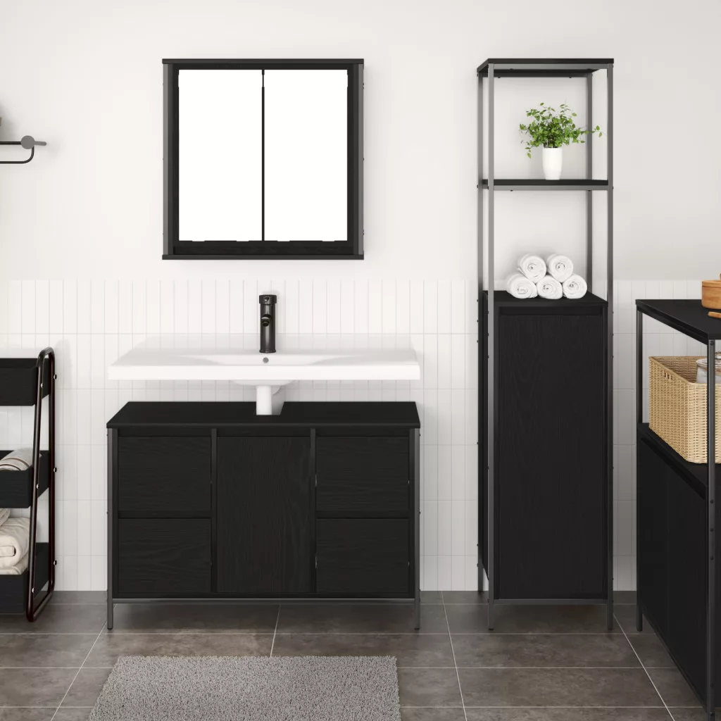2 darabos fürdőszoba bútor szett fekete tölgyből