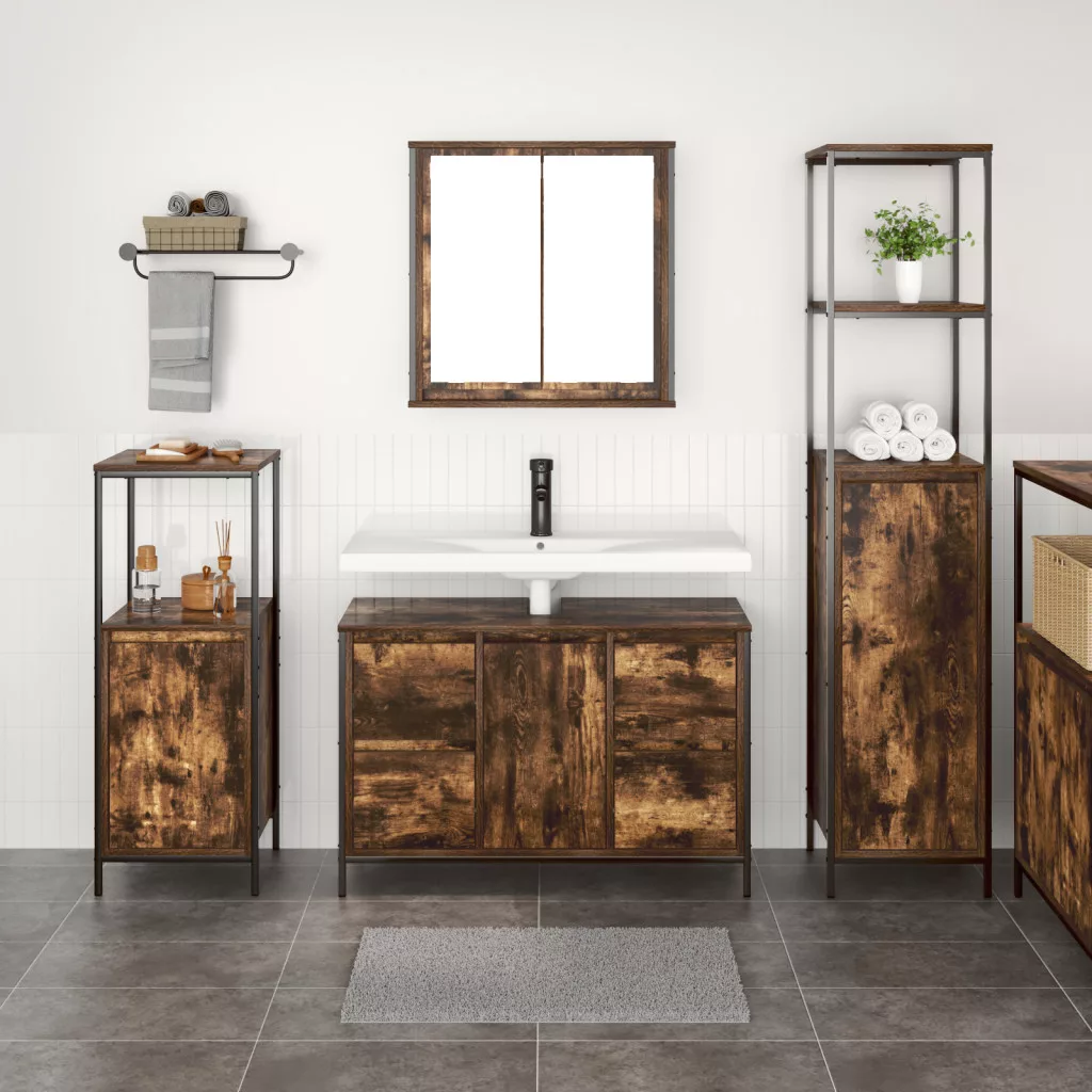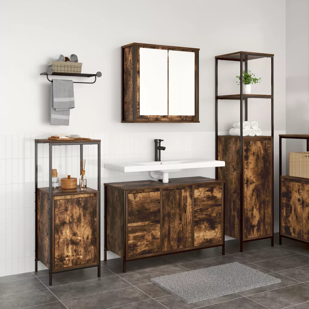 3 darabos Fürdőszobai Bútor Készlet Füstölt Tölgy Szerelt Fából