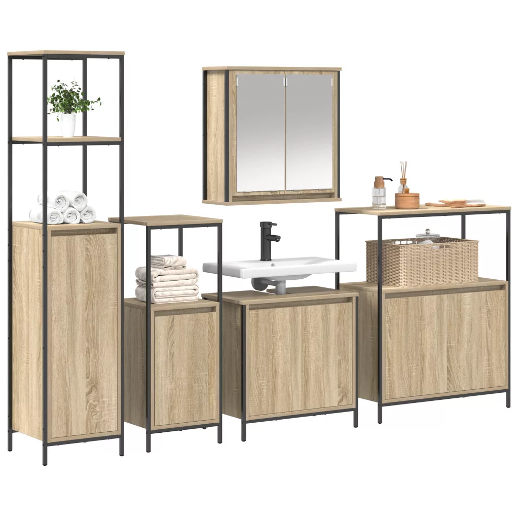 5 darabos Fürdőszoba Bútor Készlet Sonoma tölgy Műható Fából