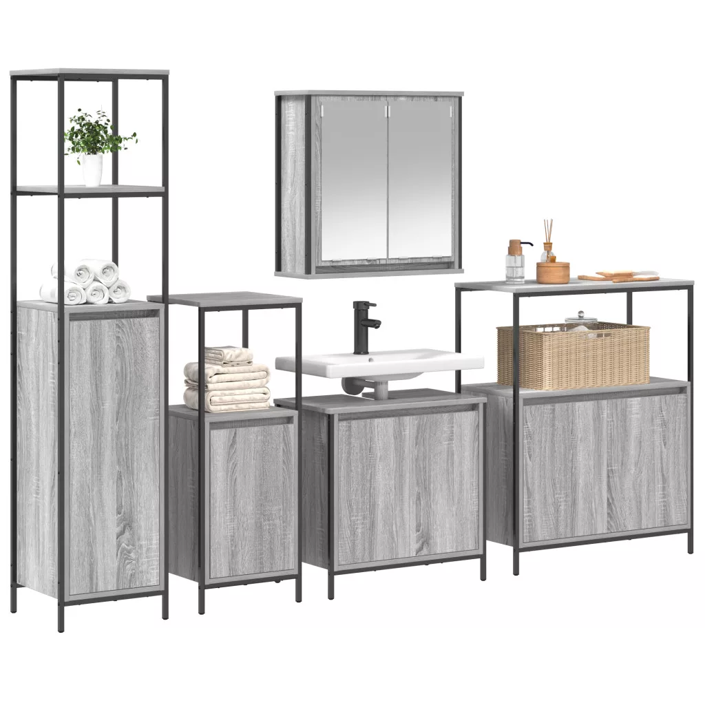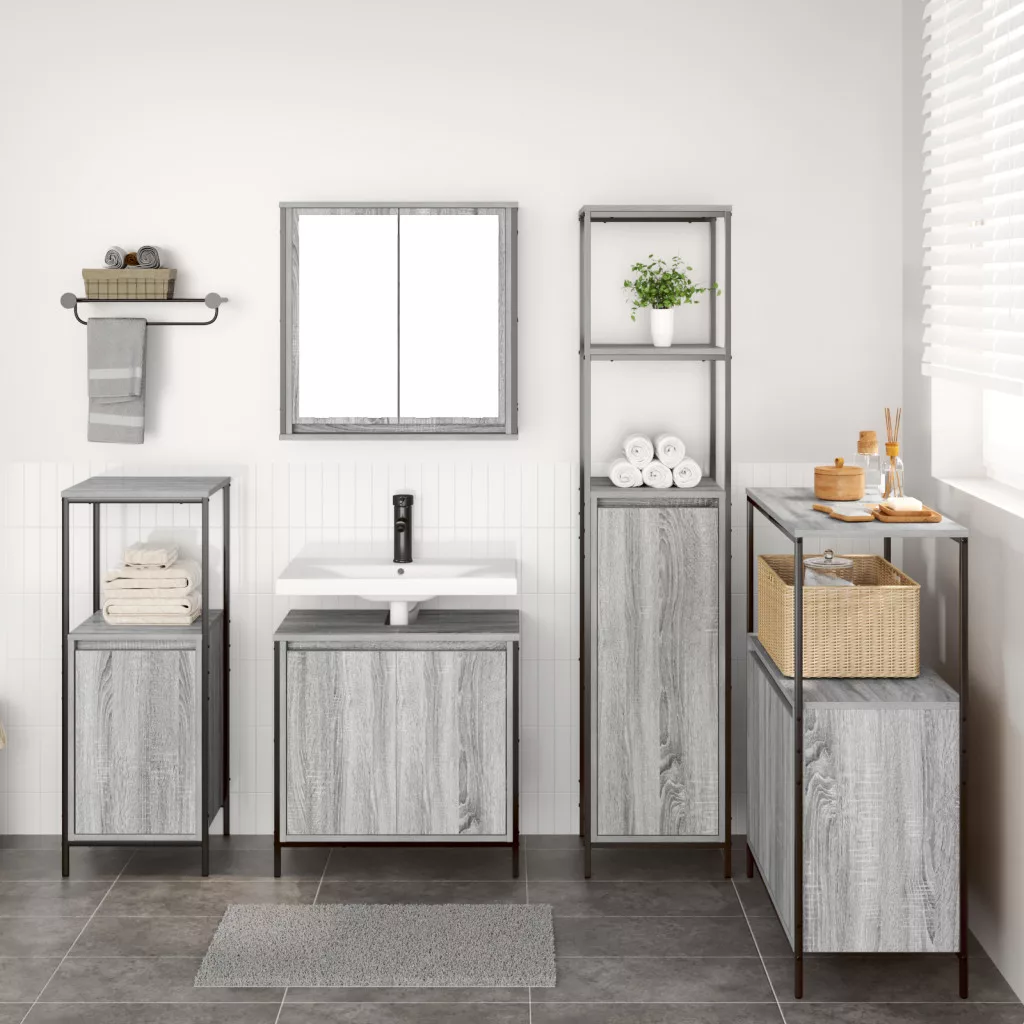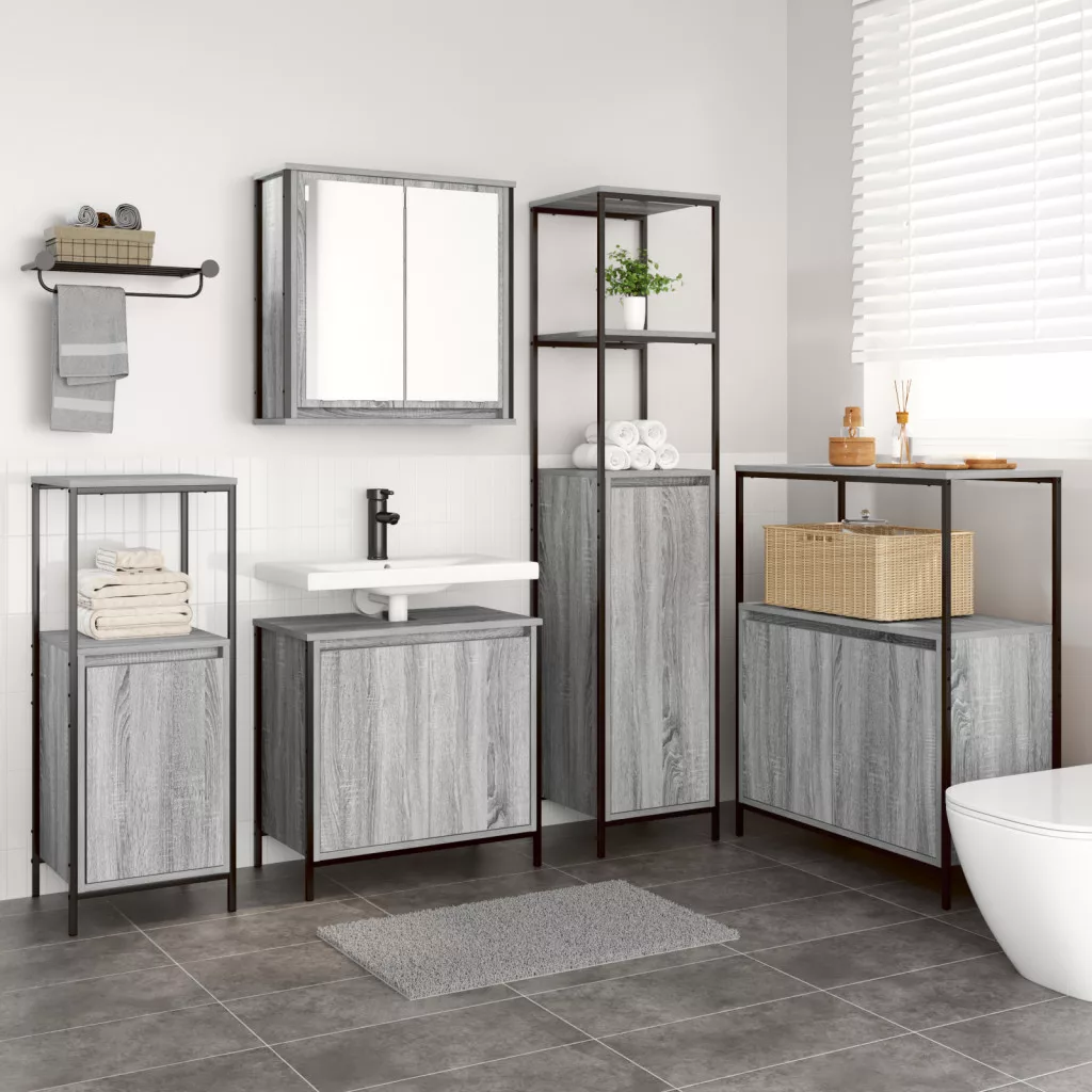5 darabos fürdőszobabútor szett szürke sonoma megerősített fából