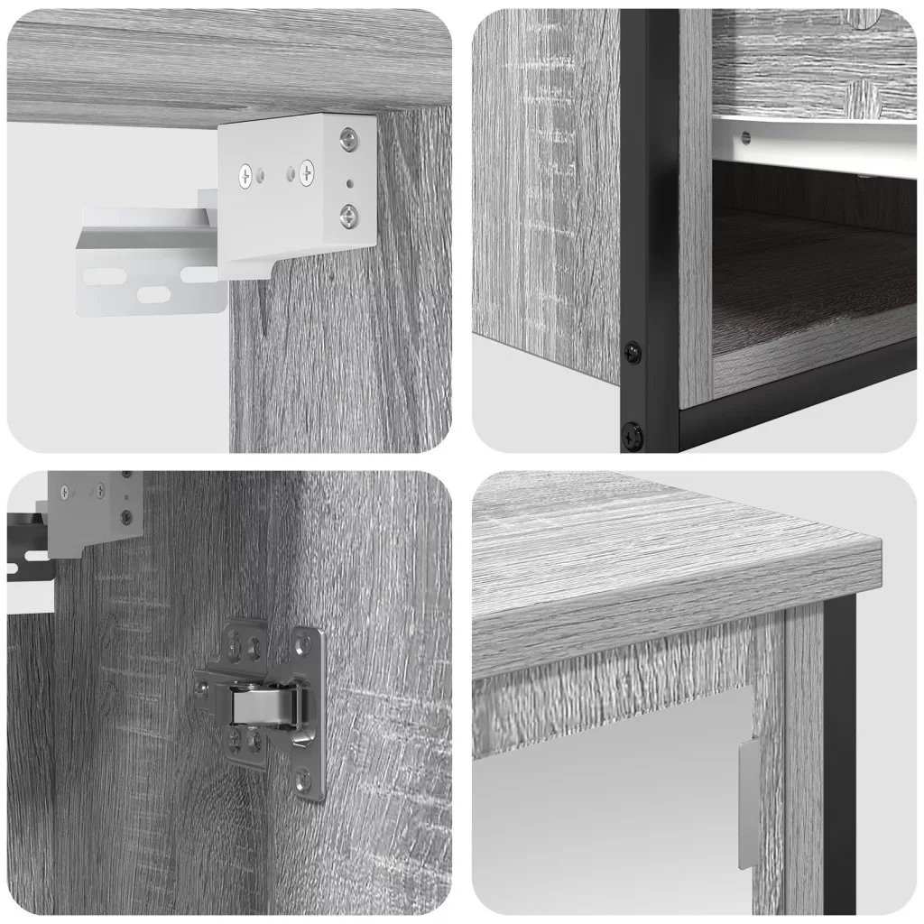Ez a fürdőszobabútor szett ötvözi a praktikusságot a stílusossággal, tökéletes a modern terek tárolási igényeihez. A klasszikus szürke sonoma felület eleganciát ad, miközben rengeteg tárolóhelyet biztosít, hogy a fürdőszobád tiszta és rendezetten nézzen ki. Rengeteg tároló: A szett különböző szekrényekből áll, mint például egy magas szekrény és egy falra szerelhető tükörszekrény, így minden fürdőszobai alapvető dolgot könnyen tárolhatsz. A törölközők, fürdőszereid és egyéb dolgok számára külön helyet biztosít, minden nap élvezheted a rendezettebb és praktikusabb teret. Menő esztétika: A szürke sonoma befejezés letisztult, minimalista dizájnja remekül passzol a modern dekorhoz. Tiszta vonalai és sima tapintása nyugodt atmoszférát teremt, a fürdőszobádat stílusos menedékké alakítja. Kiváló kivitelezés: Tartós megerősített fából és acélból készült, minden darab úgy lett megtervezve, hogy hosszú távú használatot bírja el, biztosítva, hogy időtálló legyen az otthonodban. Rugalmas használat: Minden fürdőszoba méretéhez illik, a szett különféle elrendezésekhez alkalmazkodik. Tökéletes a fő fürdőszobádhoz vagy vendég mellékhelyiségedhez, meghívva a vendégeket, hogy élvezzék a stílusos tárolási megoldást. Könnyű összeszerelés: Az egyszerű összeszerelési folyamat azt jelenti, hogy gyorsan élvezheted az új beállításodat. A legjobb, ha két ember segítségét kéred, a világos utasítások megkönnyítik, így több időt tölthetsz a tér stílusos berendezésével és rendezésével.