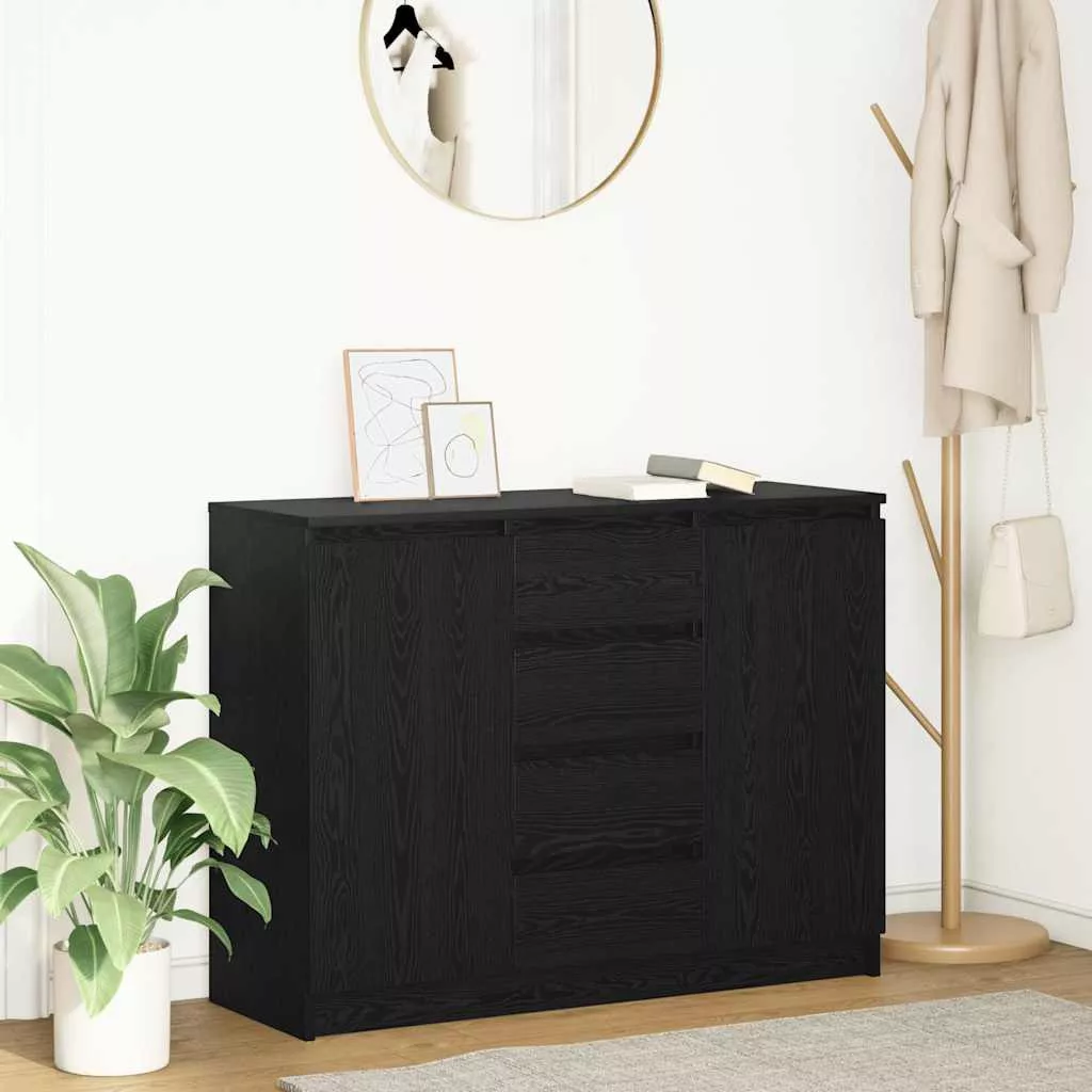 fekete tölgy szerelt fa tálalószekrény fiókos 100,5x35x76 cm