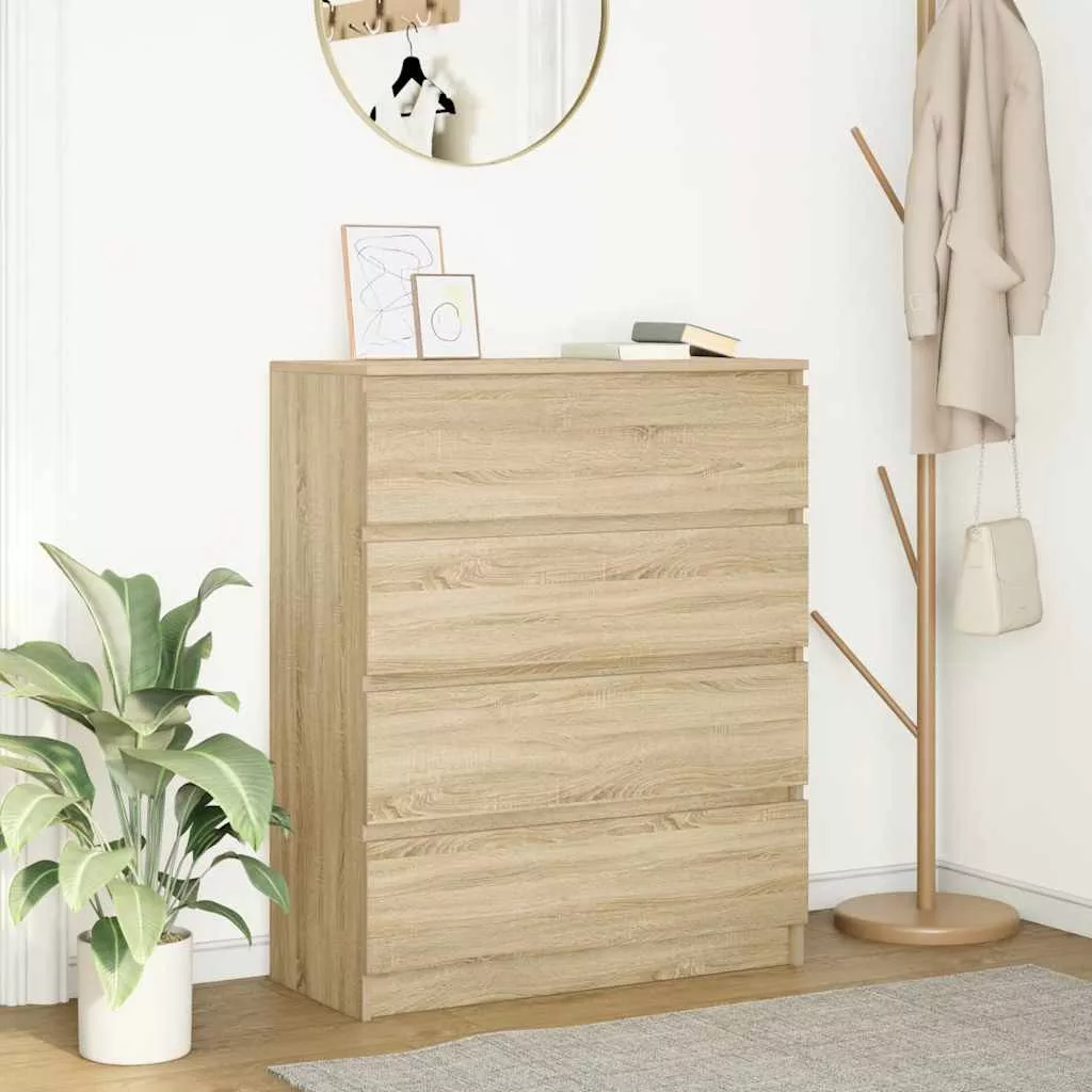 Ez a minimalista stílusú, fából készült komód számos igényét kielégíti, és otthona berendezésének ideális kiegészítője lesz. Stabil és tartós anyag: A szerelt fa tartós és stabil anyag sima felülettel, amely ellenáll a nedvességnek, a vetemedésnek és a hasadásnak, így megbízható választás különféle célokhoz.Bőséges tárolóhely: A büfé bőséges tárolóhelyet kínál az étkezési és egyéb háztartási cikkek számára, hogy azok rendezettek és elérhetőek legyenek.Robusztus asztallap: A tárolószekrény masszív asztallappal rendelkezik, amelyre dísztárgyakat, fotóalbumokat, vagy kis növényeket helyezhet.Széleskörű felhasználás: Ezt a tálalószekrényt fürdőszoba- vagy konyhaszekrényként, illetve elegáns tárolószekrényként hálószobákban, mosdókban, előszobákban, folyosókon, irodákban, étkezőkben és egyéb helyiségekben.Könnyen karbantartható: Sima felületének köszönhetően a szekrény nedves ruhával könnyen tisztítható, és kevesebb gondozást igényel. Figyelem:A felborulás elkerülése érdekében ezt a terméket a mellékelt fali rögzítőeszközzel kell használni.
