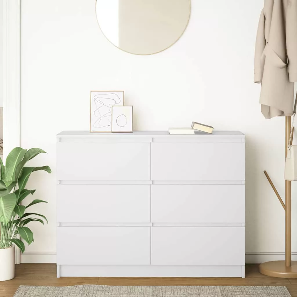 Ez a minimalista stílusú, fából készült komód számos igényét kielégíti, és otthona berendezésének ideális kiegészítője lesz. Stabil és tartós anyag: A szerelt fa tartós és stabil anyag sima felülettel, amely ellenáll a nedvességnek, a vetemedésnek és a hasadásnak, így megbízható választás különféle célokhoz.Bőséges tárolóhely: A büfé bőséges tárolóhelyet kínál az étkezési és egyéb háztartási cikkek számára, hogy azok rendezettek és elérhetőek legyenek.Robusztus asztallap: A tárolószekrény masszív asztallappal rendelkezik, amelyre dísztárgyakat, fotóalbumokat, vagy kis növényeket helyezhet.Széleskörű felhasználás: Ezt a tálalószekrényt fürdőszoba- vagy konyhaszekrényként, illetve elegáns tárolószekrényként hálószobákban, mosdókban, előszobákban, folyosókon, irodákban, étkezőkben és egyéb helyiségekben.Könnyen karbantartható: Sima felületének köszönhetően a szekrény nedves ruhával könnyen tisztítható, és kevesebb gondozást igényel. Figyelem:A felborulás elkerülése érdekében ezt a terméket a mellékelt fali rögzítőeszközzel kell használni.