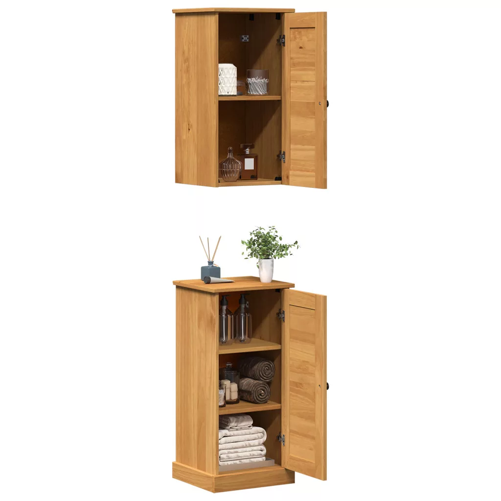 Ez a Polcos és Tároló Egység pontosan az, amire szükséged van a fürdőszobádban, ha a stílust és a hasznosságot szeretnéd egyesíteni. Rusztikus bája meleg, klasszikus hangulatot teremt, ami jól illik a különböző dekorációkhoz. A téglalap alakú és tágas belsejű, ami lehetővé teszi piperecikkek, törölközők vagy dísztárgyak tárolását. A sima felület az érintésével melegséget ad, ideális bárkinek, aki a rendezett, természetes teret kedveli. Anyag Kiválóság: Tömör fenyőből készült, ez a tároló egység gyönyörű természetes erezete miatt erős és tartós. A fa stabilitást ad, míg a rusztikus borítás jól mutat hagyományos és modern környezetben is. Funkcionális Dizájn: Zsanéros ajtókkal és polcokkal felszerelve ez a szekrény kényelmesen tárolja a fürdőszobai dolgokat. A fogantyúk nemcsak szépek, de könnyen hozzáférhetsz a cuccaidhoz, és a téglalap alak miatt jól illik szűk helyekre. Kompakt Sokoldalúság: 37 x 34 x 80 cm-es méretével ez az egység tárolást kínál anélkül, hogy elvenné a helyet a szobából. Kicsi és közepes fürdőszobákhoz ideális, rusztikus hangulata jól passzol mindenféle dekorációval. Az átlátszatlan borítás nemcsak jól néz ki, hanem stabil is. Komponens Konfigurációk: A hátlapokkal és polcokkal az egység igazán hasznos és jól néz ki. A rusztikus stílus különleges érintést ad, kiemelve szilárd megjelenését, ami meleg, természetes hangulatot teremt a térben. Megfontolt Összeszerelés: Tartósan építve, a szekrény csavarhúzót és fúrót igényel az összeszereléshez, és ajánlott, hogy két ember dolgozzon rajta. Különösen fontos, hogy a falhoz rögzítsd biztonsági okokból, hogy ne dőljön fel.