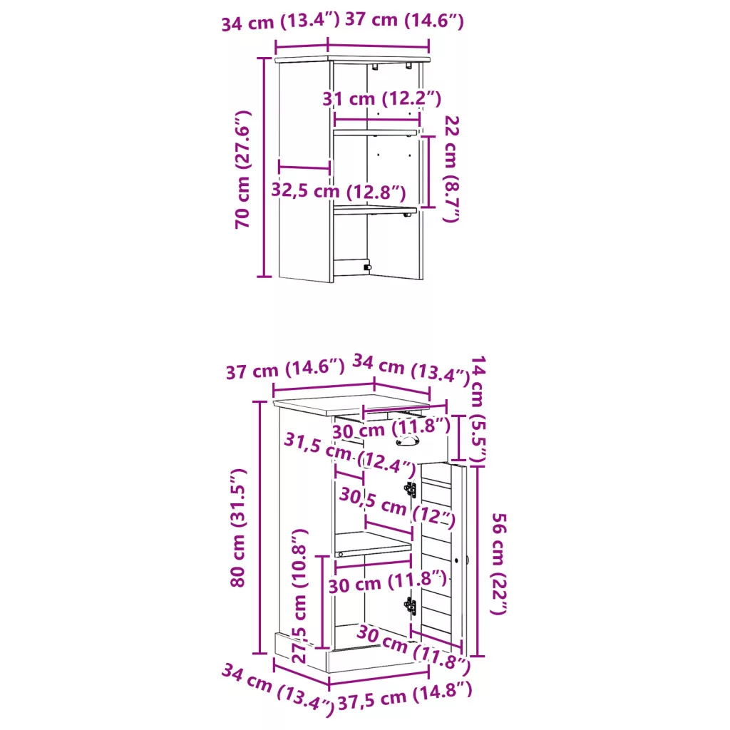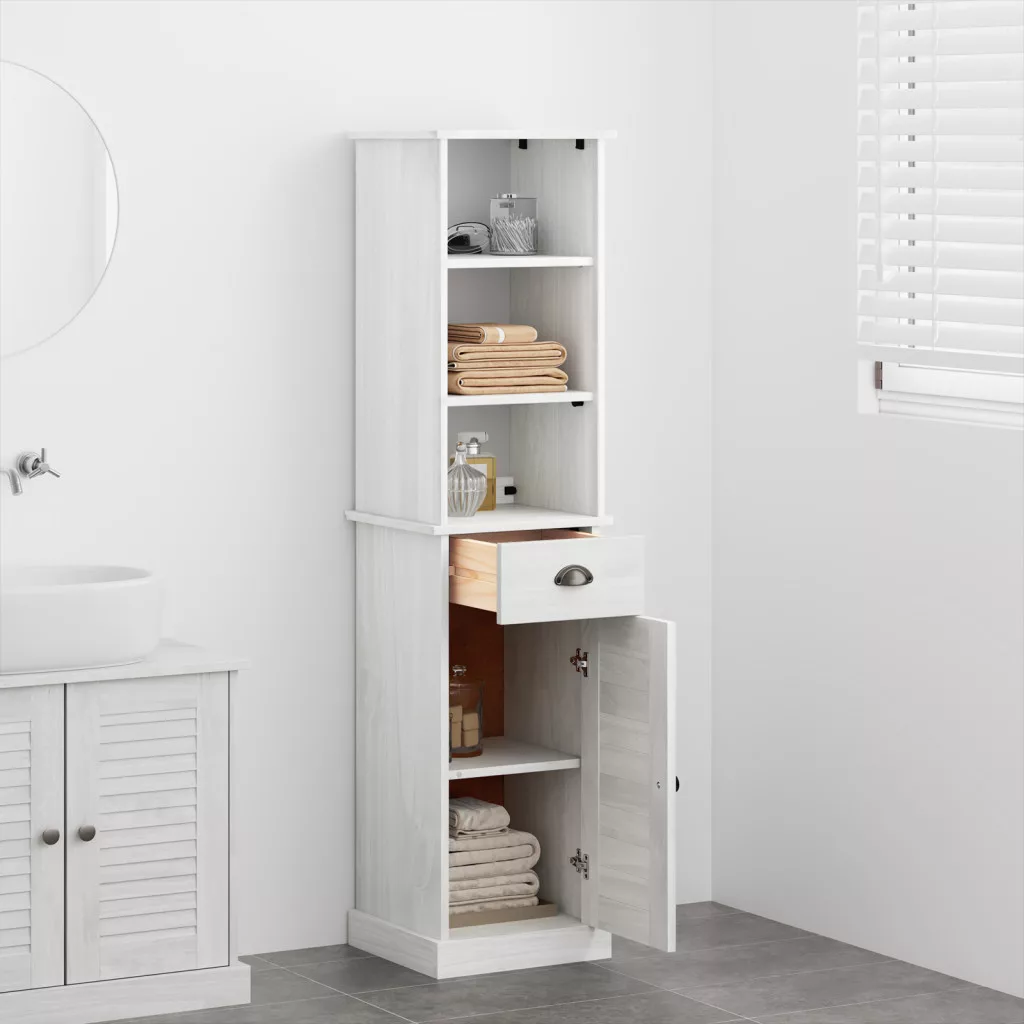 Ez a polcos és tárolóegység az összehangolt szervezésről és stílusról szól. Rusztikus megjelenése és időjárás viselte felülete tökéletesen passzol bármely fürdőszobához. A 37 x 34 x 150 cm-es méret rengeteg tárolási lehetőséget biztosít anélkül, hogy zsúfolttá tenné a kis helyeket. Ha valami természetes, mégis funkcionális darabot keresel, ez az egység igazi látványosság bármely rusztikus fürdőszobában. A sima textúra és a klasszikus forma időtlen berendezést kínál a napi piperecikkeknek és törölközőknek. Anyag Kombó: Ez az egység erős tömör fenyőből és fejlesztett fából készült, így tartós és szép. A fa erezete rusztikus hatást kelt, ami népszerű a természetkedvelők körében. Szilárd felépítése hosszú évekig használható, miközben könnyű karbantartani. Integrált Funkciók: Nyitott polcokkal és hagyományos fiókokkal van ellátva. A polcok tökéletesek a mutatós tárgyakhoz, míg a fiókok elrejtik a személyes cuccaidat. Az ajtók és fogantyúk keveréke autentikus vidéki érzetet ad és felhasználóbarát. Rusztikus Tervezési Részletek: A dekoratív betétek feldobják a megjelenést, ötvözve a rusztikus bájt a finom részletekkel. Ezek nemcsak a kinézetről szólnak—beszélgetéseket generálnak, főleg azok körében, akik szeretik a jól megmunkált darabokat. Igazán hozzájárulnak az egység egyedi karakteréhez, így kiemelkednek bármelyik szobából. Sokoldalú Felhasználás: Ez az egység jól illik különböző beltéri helyiségekhez, a fürdőszobától a nappaliig. Alkalmazkodó természetének köszönhetően idealis vidéki stílusú otthonokhoz. Akár barátokat fogadsz, akár a napodra készülsz, stílusosan elégít ki minden tárolási igényt. Praktikus Ápolás: A tárolóegység szép megőrzése egyszerű a könnyű ápolási tanácsokkal. Rögzítsd a falhoz a felborulás elkerülése érdekében. Használj kíméletes tisztítószereket, hogy friss maradjon. Kövesd ezeket a tippeket, és megőrzi a kinézetét, ötvözve a funkciót a bájjal évekig.