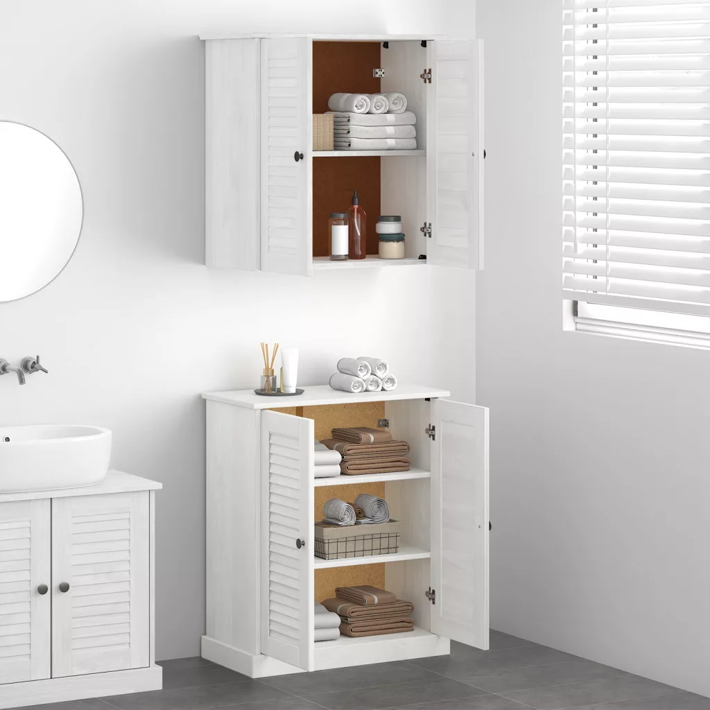 Ez a rusztikus tárolóelemspecifikusan arra készült, amire a fürdőszobádnak szüksége van: stílust és funkcionalitást ötvöz egy kompakt dizájnban. Tömör fenyőből és mérnöki fából készült, sima, átlátszatlan textúrája minden dekorációhoz illik. A téglalap alakú kivitel egyensúlyt teremt, a rusztikus stílus pedig kiemeli a természetes szépséget, így bármilyen környezethez alkalmas. Természetes Anyagok: Tömör fenyőből és mérnöki fából készült, ez a robusztus tároló tartós és szép. A minőségi anyagok erős érzetet adnak és a matt felület szépen illik a beltérhez. Kényelmes Megoldások: Deszkapolcokkal és zsanéros ajtókkal ez a tárolóegység egyszerűsíti a cuccaid elérését és rendben tartását. A fa gombok egyszerűséget és funkciót adnak hozzá. Minden rész úgy lett tervezve, hogy jól működjön stílus és használhatóság szempontjából. Tartósság és Funkcionalitás: Ez az egység időtállónak készült. Az erős kerete és strapabíró polcai mindenféle dolgot elbírnak, így megfelel a mindennapi igényeidnek. Térkihasználás: Ez az egység tökéletes a fürdőszobákhoz, maximálisan kihasználja a teret, anélkül, hogy kompromisszumot kellene kötnöd a tárolásban. Szorosan beépíthető szűk helyekre, így segít a szoba rendezett tartásában. Karbantartás: Az egység karbantartása egyszerű: csak töröld le nedves ruhával a port, és győződj meg róla, hogy a magas bútorokat a falhoz rögzíted a felborulás megelőzése érdekében. Ezek az alapvető karbantartási feladatok segítenek abban, hogy jól nézzen ki és hosszabb ideig tartson.