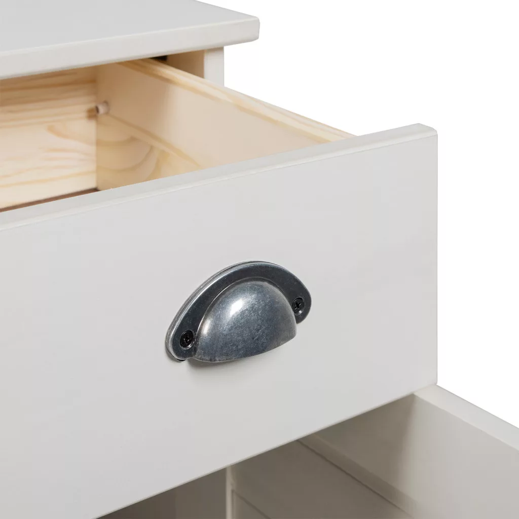 Ez a tálaló életre kelti a természetes fa rusztikus hangulatát, feldobva bármely étkezőt vagy nappalit masszív és időtlen dizájnjával. Precízen készült tömör fenyőből, a természetes fa felül süt a melegségben és a klasszikus bájban. A téglalap alak sima érzést ad, és jól illeszkedik a különböző belső stílusokhoz, amit a modern vonások és a rusztikus jókedv ötvözése ad meg. Használhatod étkezőben az étkészletek tárolására, vagy a nappali díszelemek bemutatására. A masszív kivitelezés biztosítja, hogy tartós maradjon, így alapdarab lesz a jól megtervezett otthonban. Minőségi Kivitelezés: Szakszerűen készült tömör fenyőből, ez a tálaló masszív és megbízható szerkezettel bír. A természetes fa felület rusztikus bájt teremt, ami szuperül illik a különböző dekorációs stílusokhoz. Tartósra építve, a fa erős és bírja a napi használatot, így egy hosszú távú társat kapsz az otthonodhoz. Az erős felépítés javítja a funkcionalitást, így évekig örömöd leled benne. Praktikus Design: Felszerelve különböző tárolási lehetőségekkel, ez a tálaló pont jó az összes rendezési igényedhez. A polcok remekek a kis csecse-becsék bemutatására, plusz ott vannak a hagyományos fiókok fogantyúkkal az alapvető dolgok elrejtésére. Az ajtók simán nyílnak, így gyorsan hozzáférhetsz a tárolt dolgaidhoz. Ez a figyelmes elrendezés fokozza a használhatóságot, és rendben tartja a teret. Sokoldalú Stílus: A téglalap formája és sima felülete miatt ez egy sokoldalú darab, ami jól működik nappaliban és étkezőben is. Rusztikus megjelenése, ami érdes szépséggel bír, összhangban van a vidéki bájjal és a modern stílusokkal. Akár dekorációs elemeket mutatsz be, akár mint figyelemfelkeltő tárolóegység funkcionál, stílusa különböző alkalmakhoz és igényekhez is igazodik. Biztonságos Telepítés: A tálaló telepítése gyerekjáték, így nyugodtan vághatsz bele. Az összeszereléshez két ember kell, csak egy csavarhúzóra és fúróra van szükséged, így a közös munka a fókuszban van. Miután összeraktad, stabilitást és biztonságot ad a térnek. Ápolási Tippek: Ezt a tálalót könnyű karbantartani; csak kerüld a durva vegyi anyagokat és csiszolókat, amik kárt tehetnek a természetes felületében. A nagyobb biztonság érdekében rögzítsd a falhoz, hogy elkerüld a felborulást és biztonságossá tedd a környezetet. A rendszeres ápolás segít megőrizni a külsejét és a funkcionális jellemzőit évekig.
