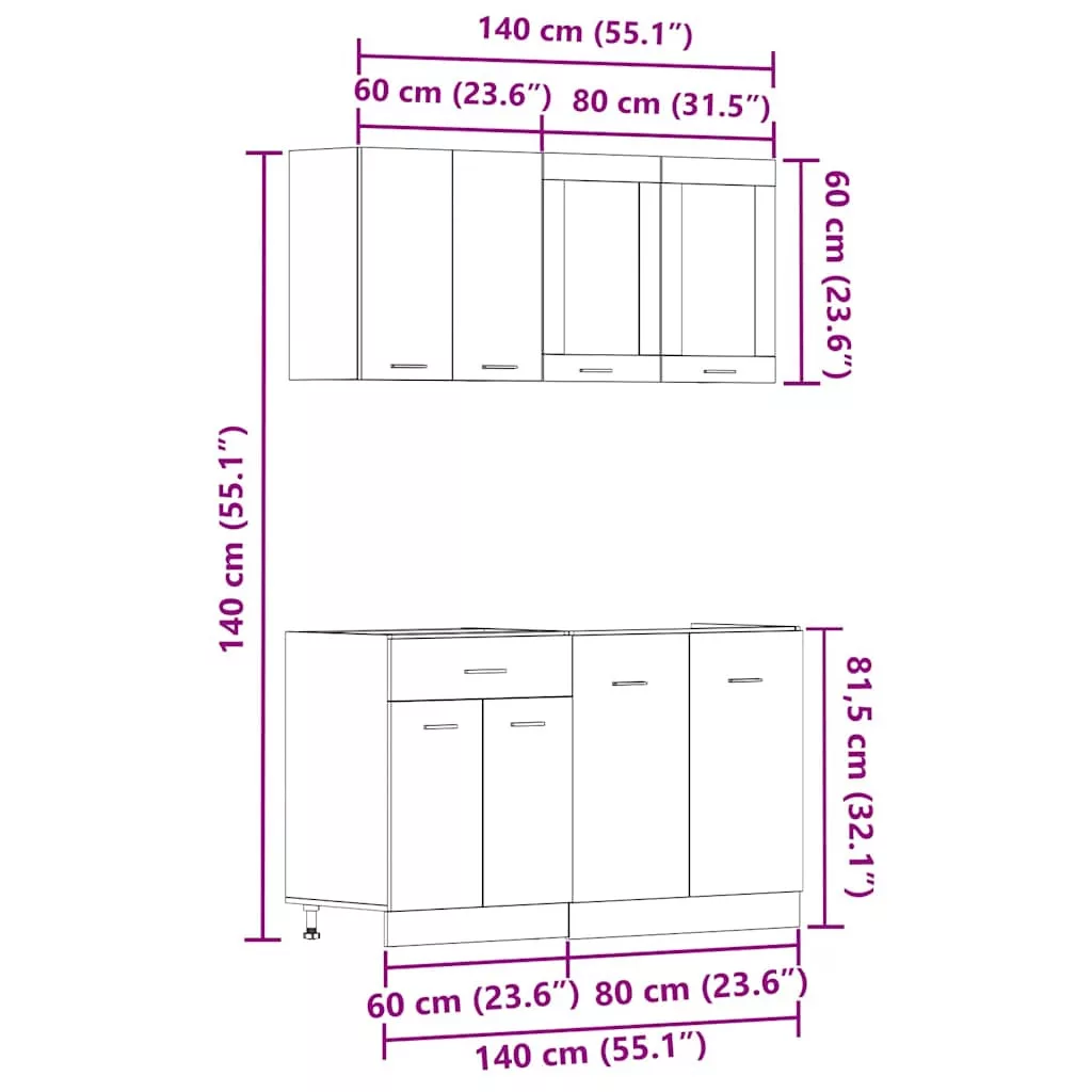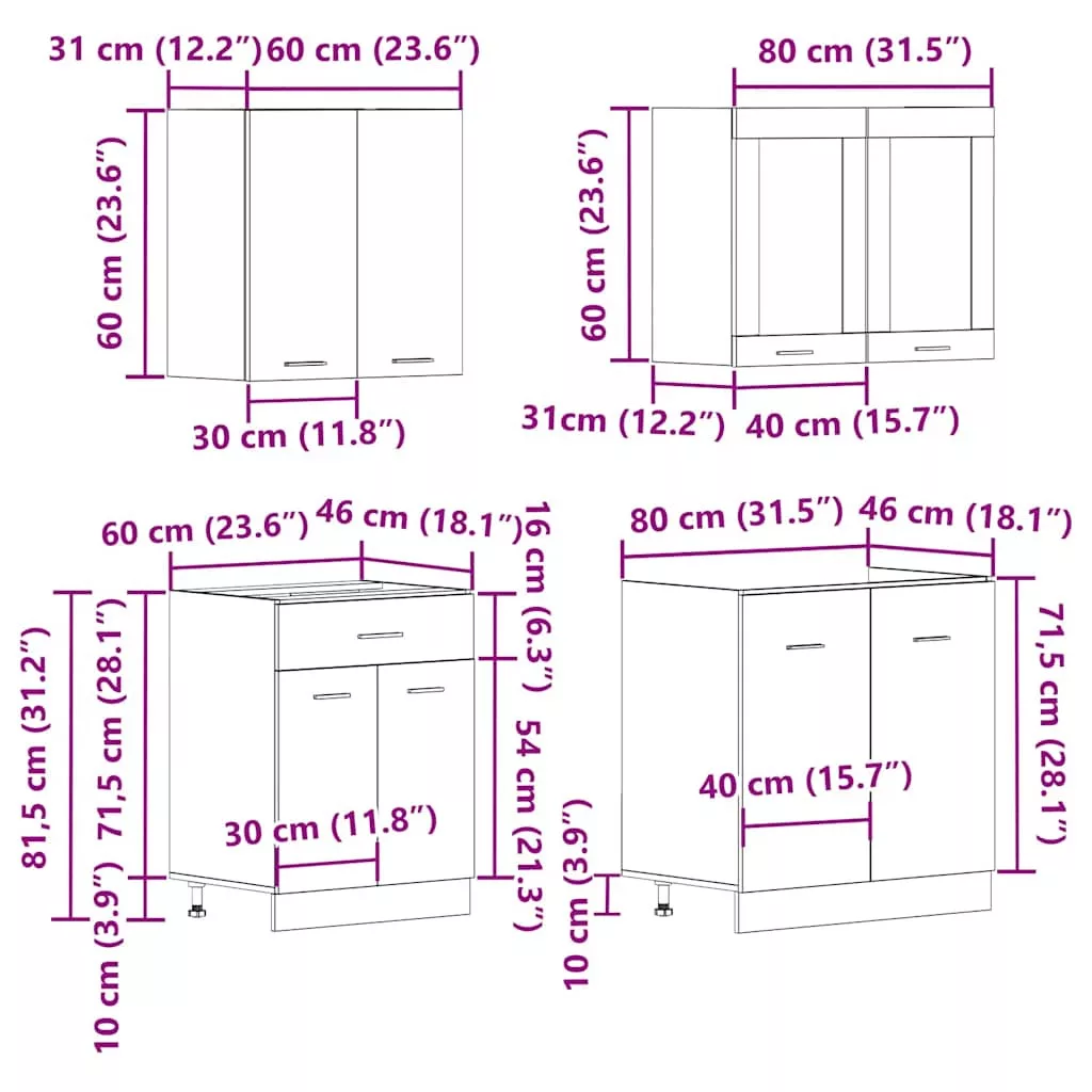 Ez az elegáns kialakítású, négyrészes konyhai szekrénygarnitúra optimalizálja konyhája terét, és bőséges tárolóhelyet biztosít személyes tárgyainak! Stabil és tartós anyag: A szerelt fa tartós és stabil anyag sima felülettel, amely ellenáll a nedvességnek, a vetemedésnek és a hasadásnak, így megbízható választás különféle célokhoz.Bőséges tárolóhely: A konyhaszekrénykészlet számos rekesszel rendelkezik, és elegendő helyet kínál tálak, tányérok, edények és egyéb konyhai eszközök tárolására.Állítható lábak: Az alsó szekrények állítható lábakkal rendelkeznek, amelyek magassága a konyha elrendezésének megfelelően állítható.Könnyen karbantartható: A sima felületnek köszönhetően ezek a konyhaszekrények könnyen tisztíthatók nedves ruhával, és kevesebb karbantartást igényelnek. Figyelem:A felborulás elkerülése érdekében ezt a terméket a mellékelt fali rögzítőeszközzel kell használni. Jó tudni:A falon belüli csavar(ok) és dugó(k) nem alaptartozékok. Keressen és használjon a falának megfelelő csavar(oka)t és dugó(ka)t. Ha bizonytalan, kérje szakember tanácsát. Gondosan olvassa el és kövesse a használati utasítás minden lépését.A munkalap, a mosogató és a csaptelep nem tartozéka a szállításnak.