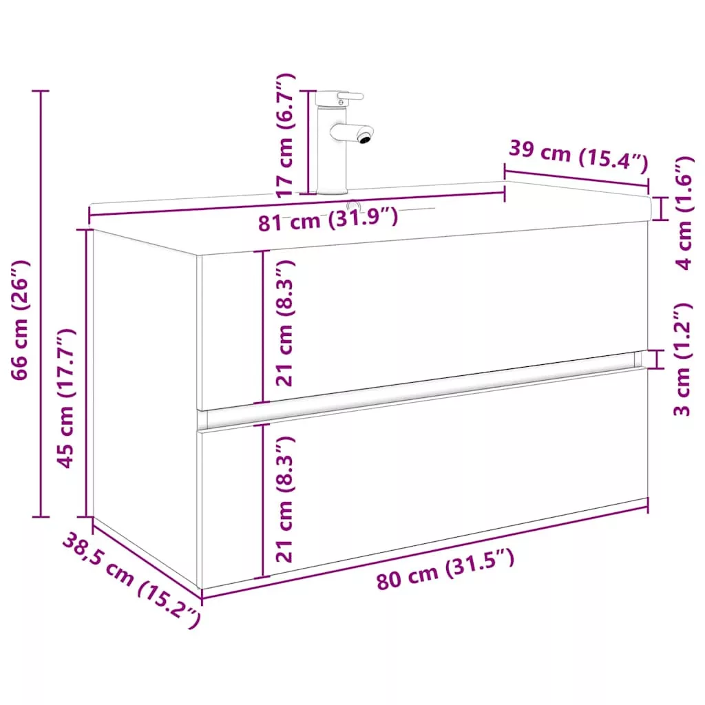 Ez a stílusos mosdószekrény beépített mosdókagylóval és csapteleppel, tágas tárolóhelyekkel kiváló kiegészítője fürdőszobájának, rendezett és mutatós megjelenést kölcsönözve neki! Robusztus anyag: A mosogatószekrény kivételes minőségű, sima felületű, szilárdsággal, stabilitással és nedvességállósággal is rendelkezik.Bőséges tárolóhely: A fürdőszobai mosdóegység egy fiókkal rendelkezik, amely bőséges helyet biztosít a fürdőszobában lévő holmik tárolására.Praktikus kialakítás: A fürdőszobaszekrény teteje ideális a mosdókagyló elhelyezésére.Falra szerelhető: a fürdőszobaszekrény falra szerelhető, így extra tárolóhelyet biztosít. Ezáltal maximalizálhatja a padlóterületet, és tisztán tarthatja a környezetét.Túlfolyófunkció: Túlfolyóval is rendelkezik, hogy kifolyjon a víz, ha a mosdó túlságosan megtelik. Jó tudni:A falon belüli csavar(ok) és dugó(k) nem alaptartozékok. Keressen és használjon a falának megfelelő csavar(oka)t és dugó(ka)t. Ha bizonytalan, kérje szakember tanácsát. Gondosan olvassa el és kövesse a használati utasítás minden lépését.A csomag a csaptelepet és a túlfolyófunkcióval ellátott nyomógombos leeresztőszelepet tartalmazza.A csaptelep hideg-meleg vizes, és ha meleg vízre van szüksége, vízmelegítőt kell csatlakoztatni hozzá. A gyermekeket felügyelni kell, hogy ne játszhassanak az eszközzel. Tartsd távol a gyermekeket a szerelési területtől. Figyelem: Olvasd el alaposan az utasításokat használat előtt, és tartsd meg későbbi hivatkozásra.
