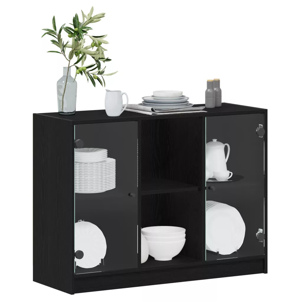 Oldalszekrény Fekete Tölgy 102x37x75,5 cm Mérnöki Fa