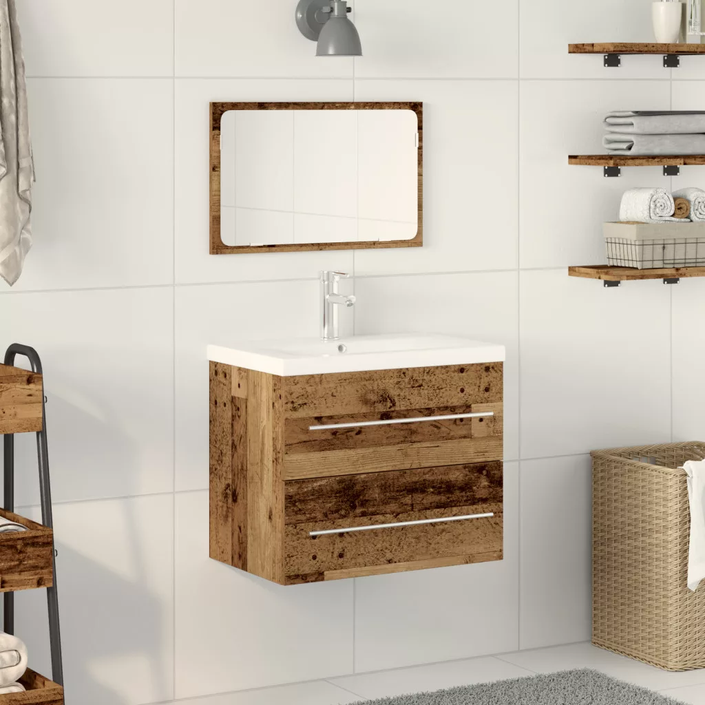 Ez a fürdőszoba mosdószekrény a stílusra és praktikusságra épül, és kényelmes menedéket teremt a vécédnek. Rusztikus hangulata van az öreg fa felülettel és texturált fehér pulttal, meleg érzést ad a térnek, miközben szuper hasznos a napi ápolási szükségleteidhez. Rusztikus kinézet: A szekrény rusztikus dizájnja teljes mértékben az újrahasznosított fán alapul, meleg és barátságos légkört teremt. Számos dekorhoz illik, így rugalmas választás bármilyen otthonhoz. Funkcionális tárolás: Két nagy fiókkal rendelkező szekrény, elegendő helyet ad a piperecikkeknek és törölközőknek. A hagyományos fogantyúk stílust kölcsönöznek, és megkönnyítik a dolgok elérhetőségét. Könnyű tisztítás: Strapabíró kerámia felületekkel ez a fürdőszobai egység a napi használatra készült, lehetővé téve a gyors tisztítást egy nedves ruhával, miközben hosszú távon is ellenáll a kopásnak. Kompakt dizájn: 60 x 38.5 x 48 cm-es mérete tökéletes szűk fürdőszobákba, maximalizálva a funkcionalitást, miközben megőrzi a stílust. Tartalmaz csapot és lefolyót: Ez a szekrény teljes mértékben felszerelt beépített mosdóval, csapteleppel és lefolyóval, megkönnyítve az összeszerelést és növelve az összértékét. A gyermekeket felügyelni kell, hogy ne játsszanak a készülékkel. Tartsa távol a gyerekeket az összeszerelési területtől. Figyelem: Használat előtt figyelmesen olvassa el az utasításokat, és őrizze meg további hivatkozás céljából.
