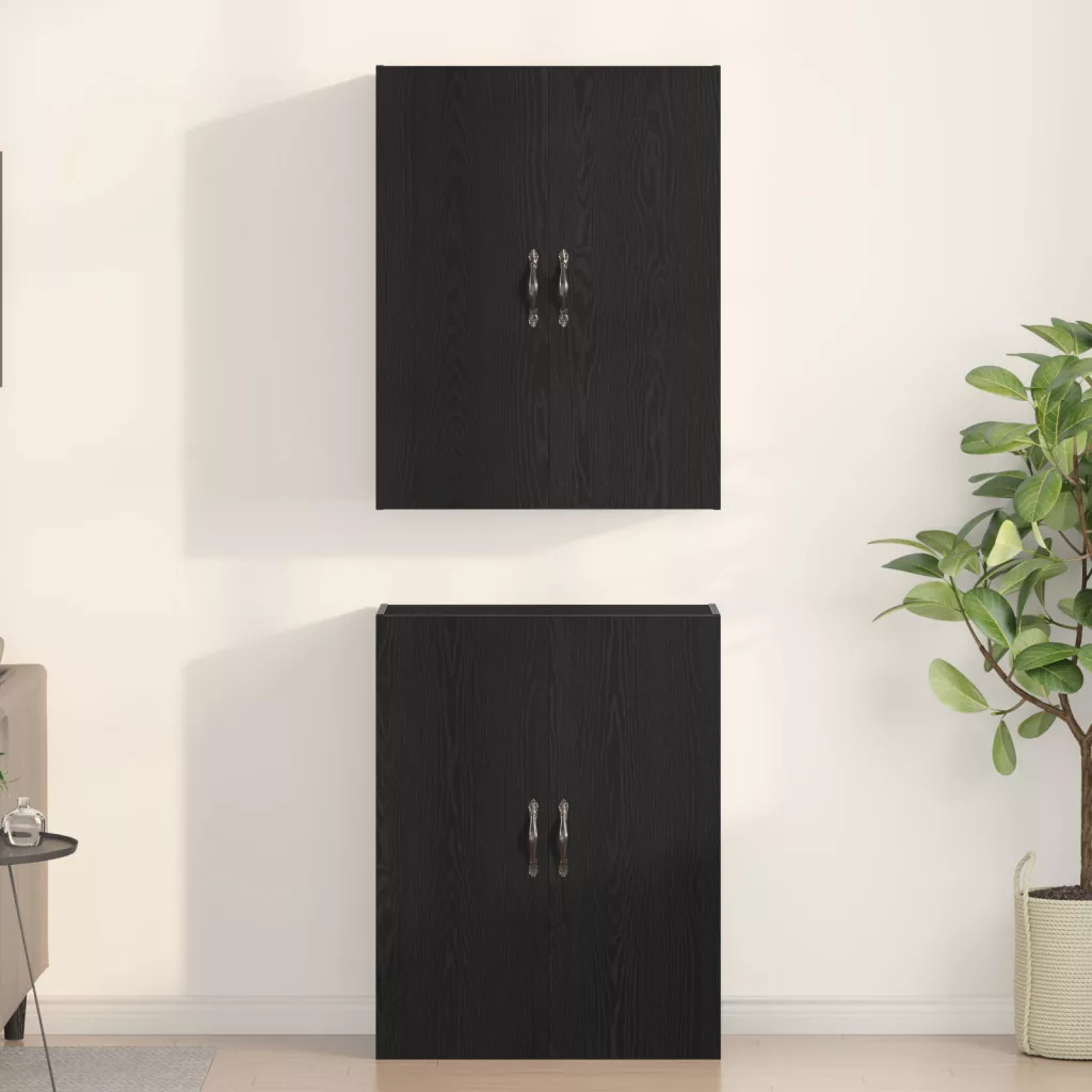 2 db Szekrény Fekete Tölgy 69,5x34x180 cm Műanyagul Fa