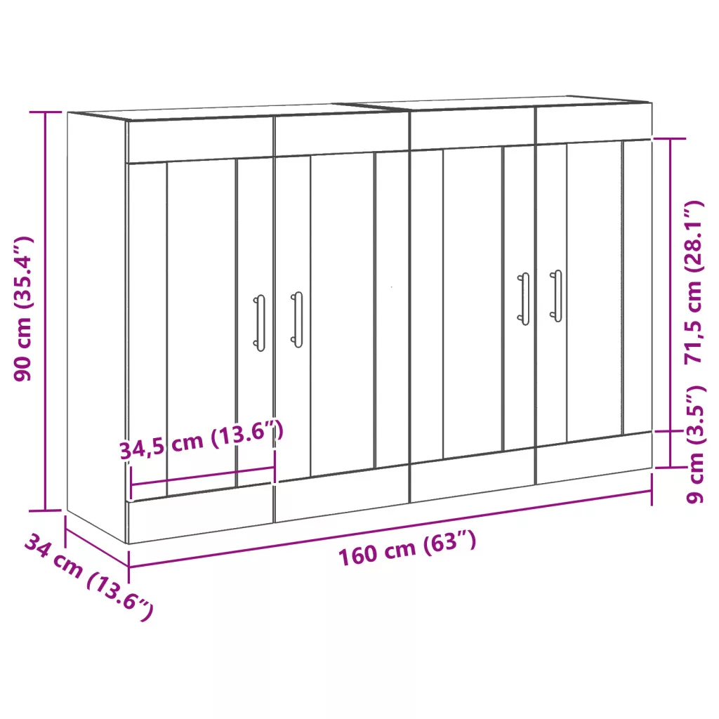 Frissítsd a ház szervezését a vidaXL falfelületi szekrényekkel! Stílusos fekete tölgy színben, ezek a szekrények kombinálják a praktikusságot a modern dizájnnal – tökéletesek az étkezőbe vagy a nappaliba. A sima matt felületű szekrények négy zsanéros ajtóval és két fiókkal vannak ellátva, tömör tölgyből készült, tartós anyaggal.