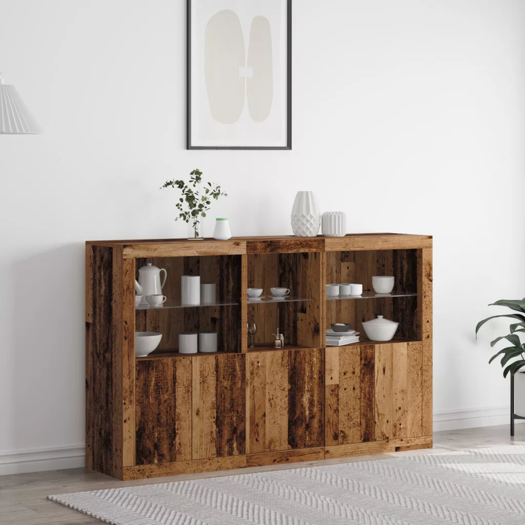 Tálaló LED világítással Viharvert fa 162x37x100 cm Műanyag