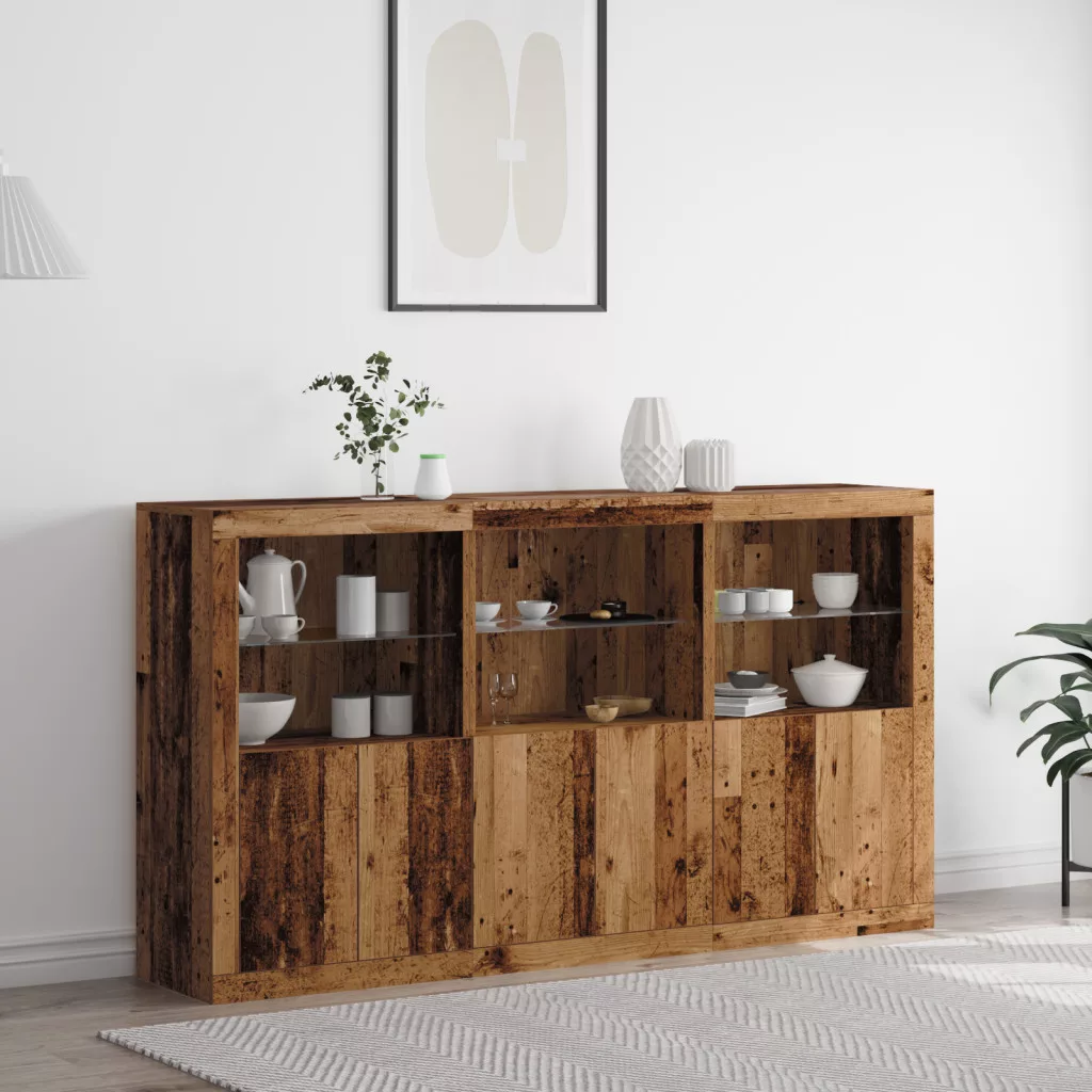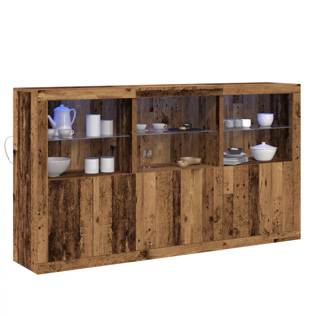 LED világítással rendelkező oldalszekrény Régi fa 181.5x37x100 cm Mérnöki fa