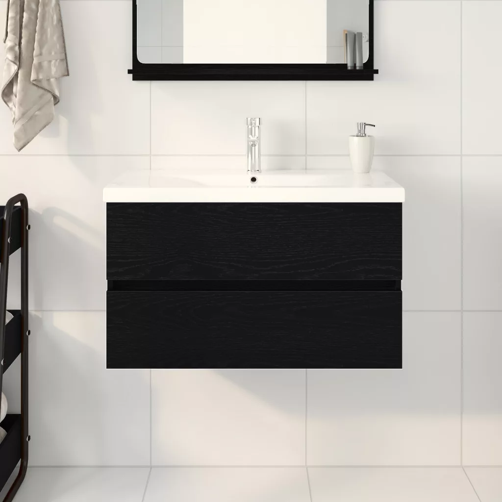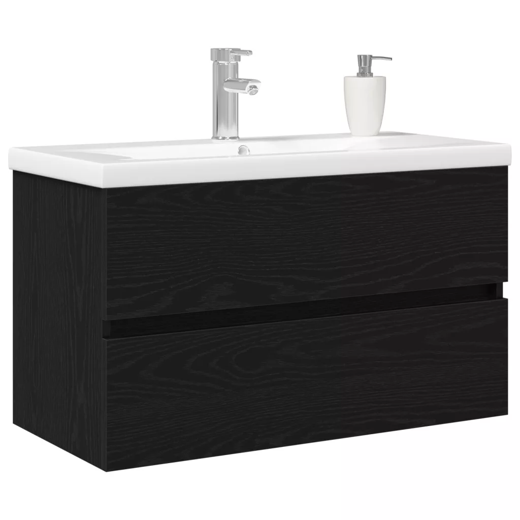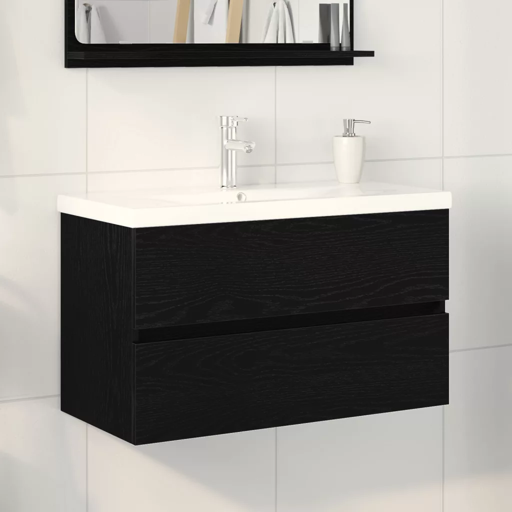 mosdószekrény beépített mosdóval fekete tölgy szerelt fa