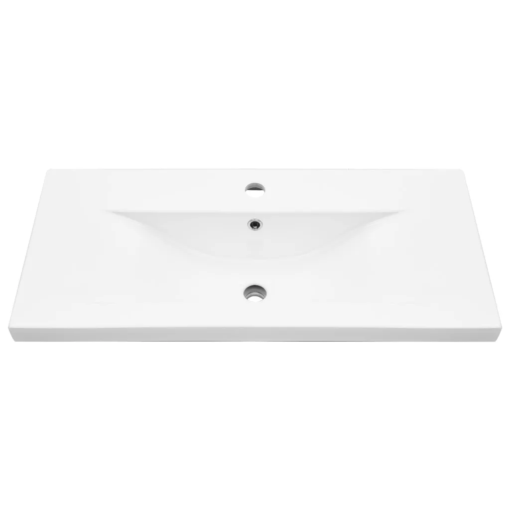Ez a mosdószekrény arról szól, hogy ötvözi a modern stílust a mindennapi praktikummal, így tényleg jó kiegészítője a fürdőszobádnak. Szerelt fából készült, lenyűgöző fekete tölgy színben, letisztult formájú beépített mosdója van, ami nemcsak jól néz ki, hanem biztosítja az alapvető tárolóhelyet is. Bőséges tárolóhely: A mosdószekrény két tágas fiókban rejti el a piperecikkeket és ápolási cuccokat, így rendezett marad a fürdőszobád. Modern esztétika: Letisztult minimalista dizájnjával ez a szekrény könnyen beilleszkedik a különböző fürdőszobai stílusokba, eleganciát adva a dekorációdnak. Tartósság: Magas minőségű szerelt fa és kerámia anyagból készült, ez a bútor sokáig megőrzi varázsát és szilárdságát. Kényelmes funkciók: Beépített kerámia mosdója és meleg illetve hideg csaptelepe megkönnyíti a fürdőszobai elrendezést - mindez egy okos csomagban. Egyszerű karbantartás: A matt felület nemcsak jól néz ki, de a tisztítás is gyerekjáték - csak töröld le egy nedves ruhával! A gyermekeket felügyelni kell, hogy ne játsszanak a készülékkel. Tartsa távol a gyerekeket az összeszerelési területtől. Figyelem: Használat előtt figyelmesen olvassa el az utasításokat, és őrizze meg további hivatkozás céljából.