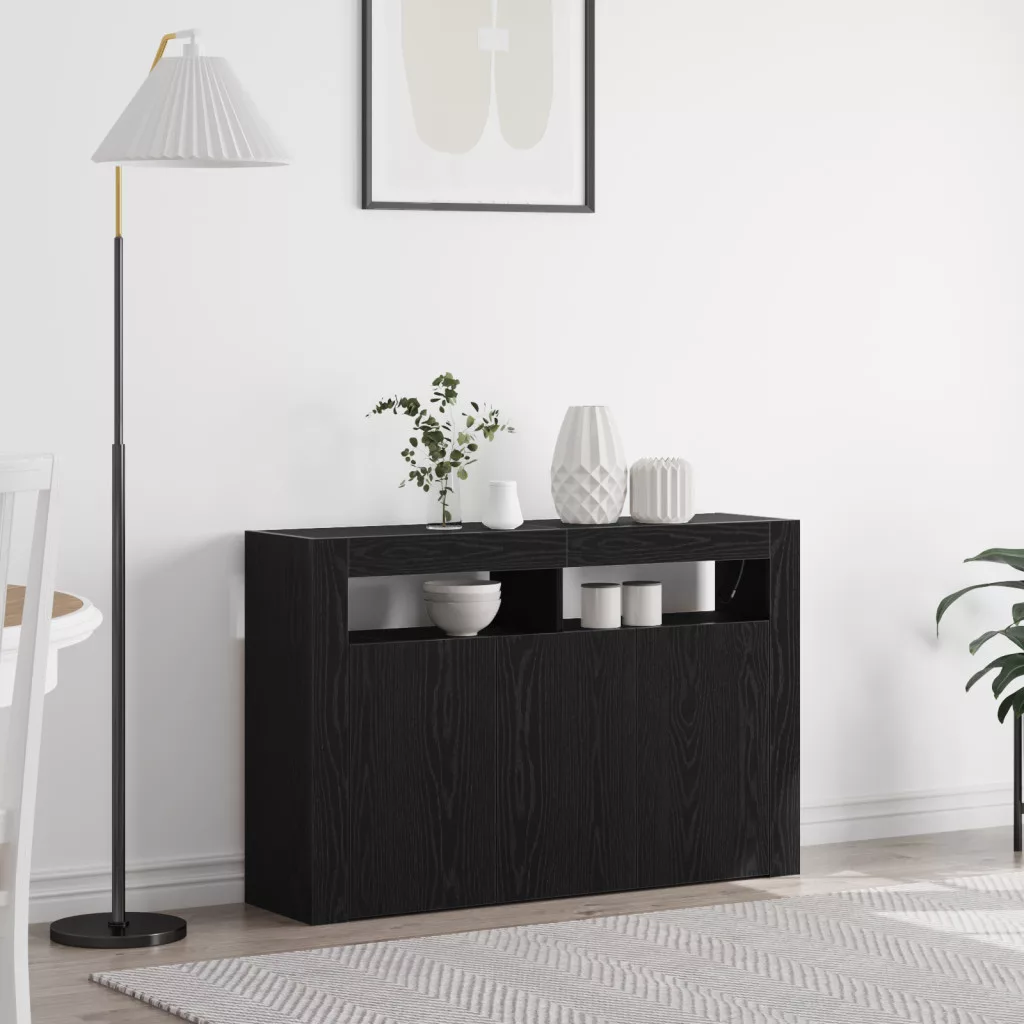 Ez a Modern Fekete Tölgy Oldalszekrény egy sokoldalú darab, ami klasszul néz ki bármelyik otthonban, ötvözve a praktikusságot a stílusos megjelenéssel. Tökéletes nappalikba vagy étkezőbe, minimalista dizájnnal és szuper fekete tölgy felülettel. Azok a színes LED fények? Igazán hangulatot teremt, ideális baráti összejövetelekhez vagy egy nyugodt estéhez. Jó nagy tárolóhely: Az oldalszekrény nyolc rekesszel rendelkezik az étkezési kellékek, elektronika vagy dekoráció tárolására, lehetővé téve, hogy a választott dekorációd segítségével kifejezd a személyiségedet. Beépített LED világítás: Menő LED szalagok világítanak, és beállítják a hangulatot különböző alkalmakhoz, akár barátok fogadásáról, akár egy nyugodt estével van szó. Kortárs megjelenés: Modern, téglalap alakú formája tiszta vonalakkal stílusos fókuszpontot teremt bármely helyiségben, tökéletesen illeszkedik a különféle belső stílusokhoz, kiegészítve otthonodat. Strapabíró anyag: Rétegelt lemezből készült, az oldalszekrény tartósnak ígérkezik. A sima felület nemcsak jól néz ki, de könnyen is tisztán tartható, ami megkönnyíti az életet. Könnyű összeszerelés: Ki kell rakni, de minden, amire szükséged van, benne van. Egyértelmű utasításokkal, ketten gyorsan be tudják állítani és használatra készé tenni. Kérjük, vegye figyelembe, hogy csak tanúsított DC 5V bemenetet használjon. A magasabb feszültség túlmelegedést okozhat, és károsíthatja a készüléket, valamint túlhevülés és tűz kockázatát jelentheti. Ne csatlakoztassa ezt a terméket semmilyen más tápegységhez, mint amit a kézikönyvben, a névtáblán vagy a vidaXL kifejezetten ajánlott. Ezt a készüléket nem használhatják 14 évesnél fiatalabb gyermekek, valamint csökkent fizikai, érzékszervi vagy mentális képességekkel rendelkező személyek, vagy elektronikai eszközök használatában tapasztalatlan vagy tudás nélküli személyek. Az elektromosság veszélyes. A nem megfelelő telepítés, használat vagy módosítás (egyedi alkatrészek cseréje) a készülék károsodásához vezethet, áramütést és veszélyt okozva a felhasználónak. Ne működtesse ezt a terméket robbanásveszélyes atmoszférában, például gyúlékony folyadékok, gázok és por jelenlétében, vagy 50 Celsius foknál magasabb hőmérsékleten. Ne kapcsolja be a terméket, ha a csatlakozó kábel vagy tápegység láthatóan sérült. Ha a lámpa külső hajlékony kábele vagy vezetékje sérült, azt kizárólag a gyártó vagy annak szervizügynöke, illetve hasonló képesítéssel rendelkező személy cserélheti ki, hogy elkerülje a veszélyt. A telepítés és karbantartás alatt kapcsolja ki az áramot. Győződjön meg arról, hogy a fényforrások lehűltek. Ennek a lámpatestnek a fényforrása nem cserélhető; ha a fényforrás elérte élettartamának végét, az egész lámpát ki kell cserélni. Csak belső használatra, ne használja kültéren.