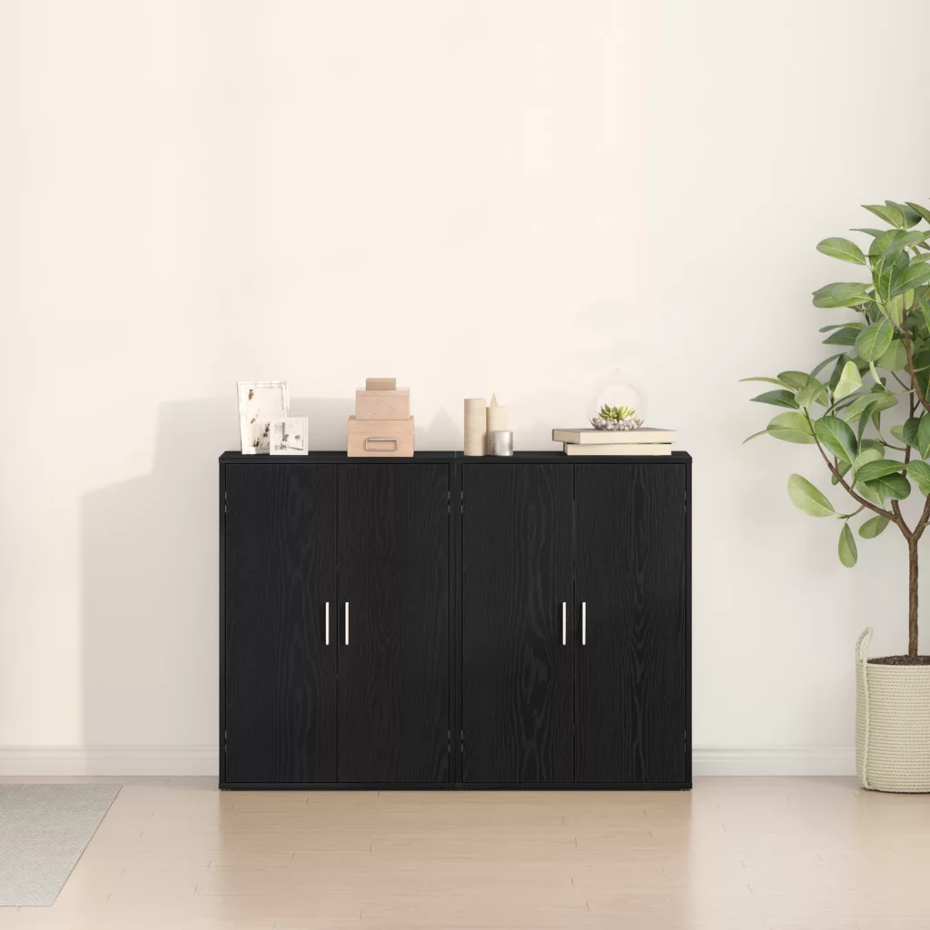 2 db fekete tölgy oldalszekrény 60x31x84 cm, mérnöki fa