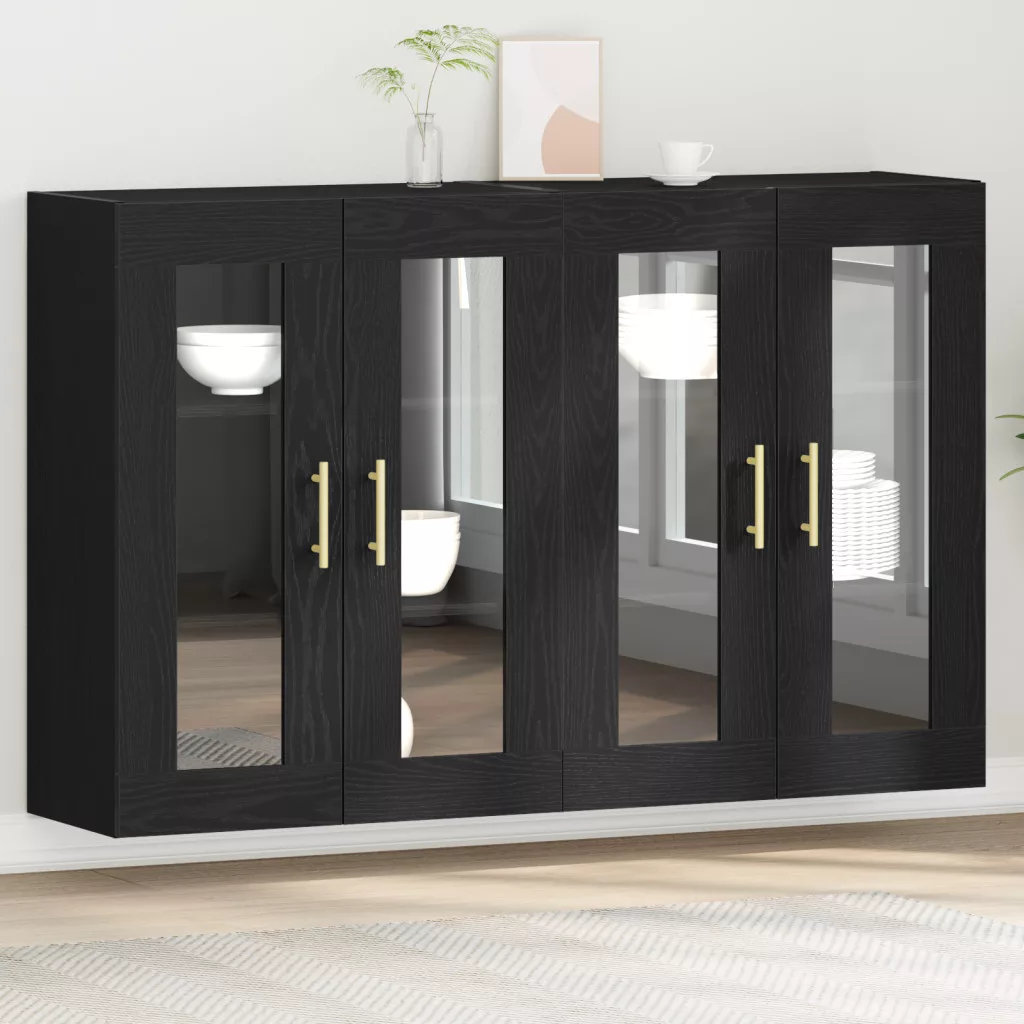 Fali Szekrény 2 db Fekete Tölgy 69,5 x 34 x 90 cm Műgyanta Fa