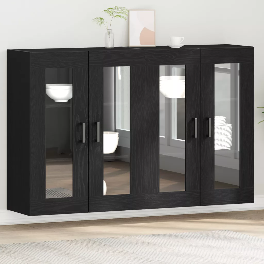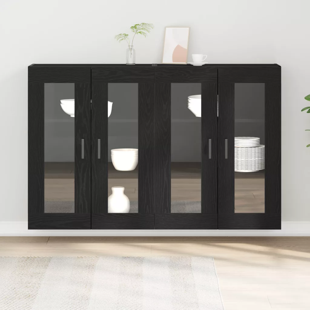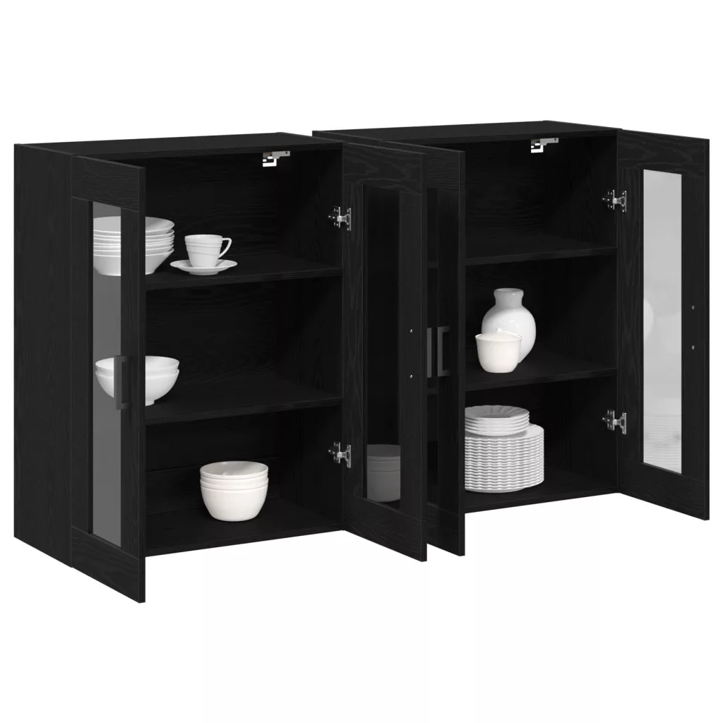 Fali Szekrények 2 db Fekete Tölgy 69,5 x 34 x 90 cm Mesterséges Fa
