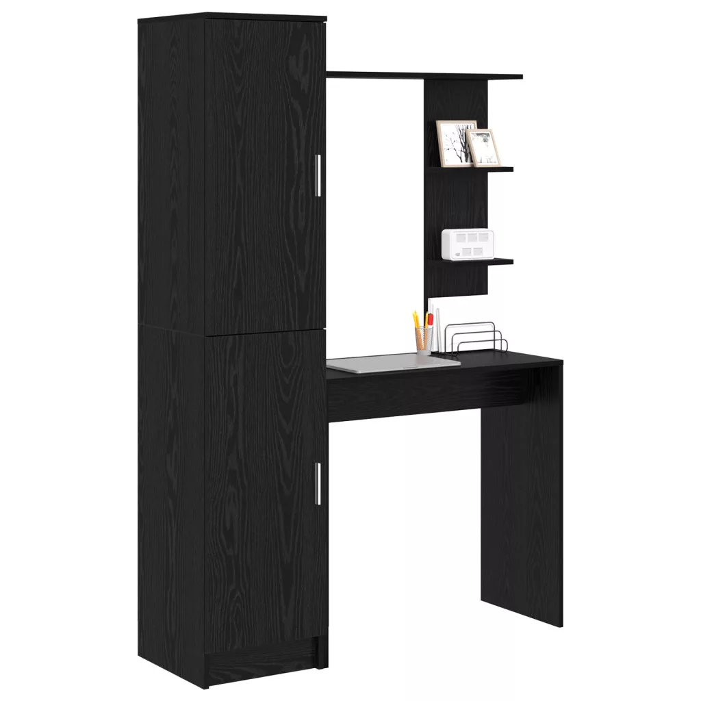 íróasztal tárolóval Fekete tölgy Szerelt fa