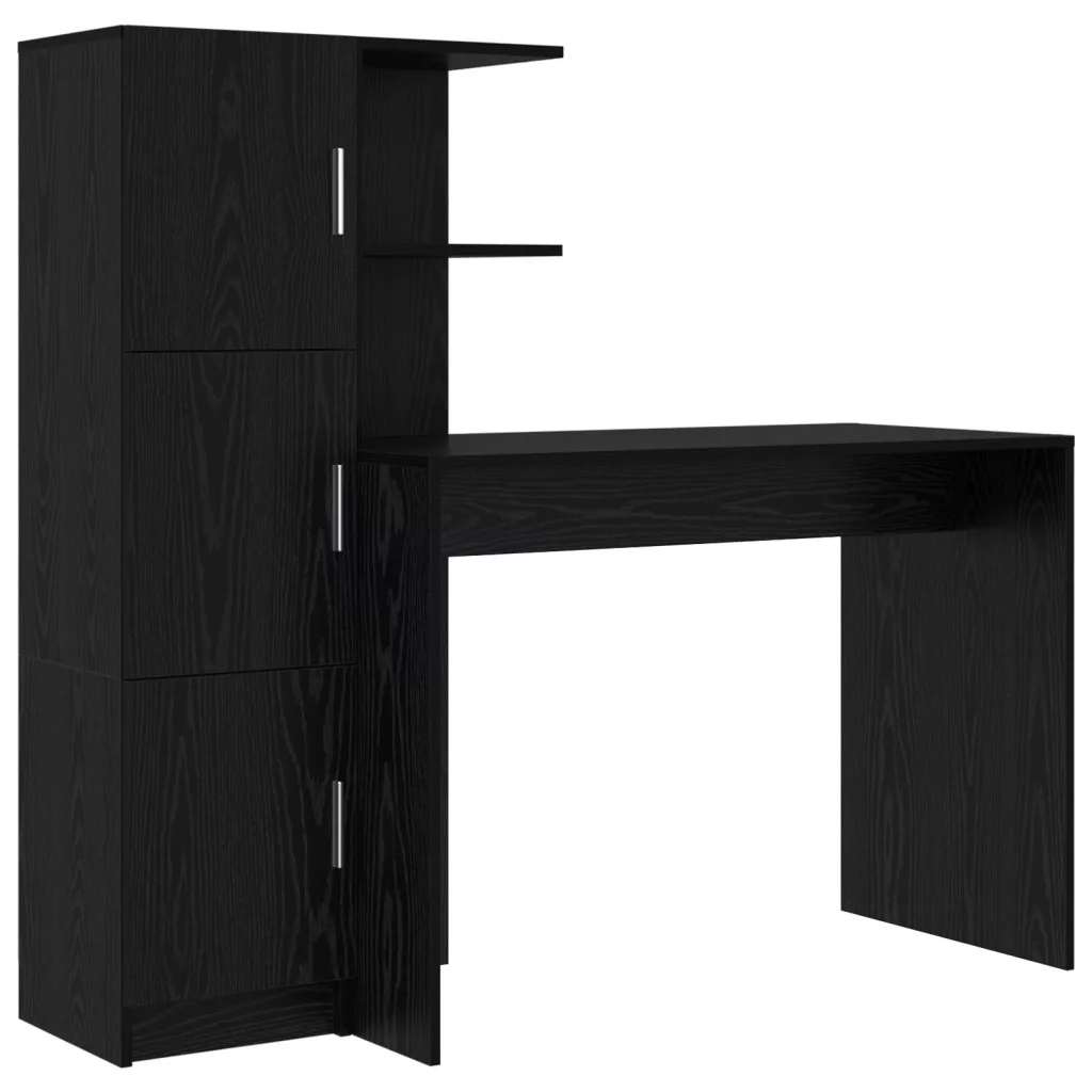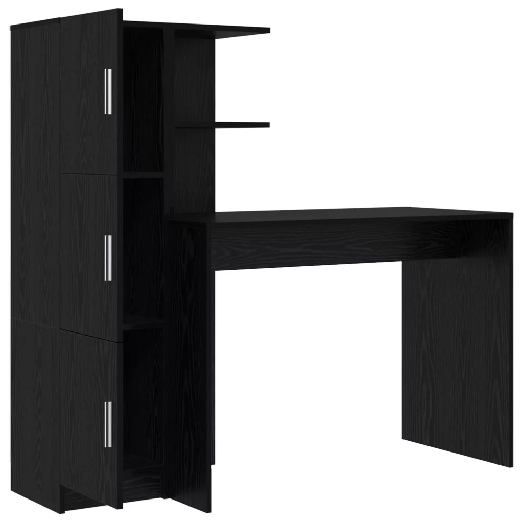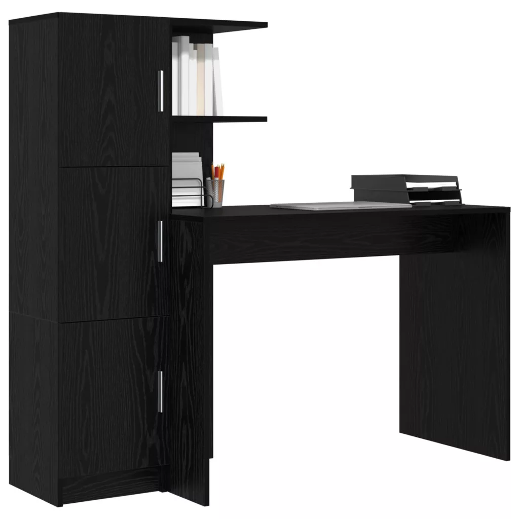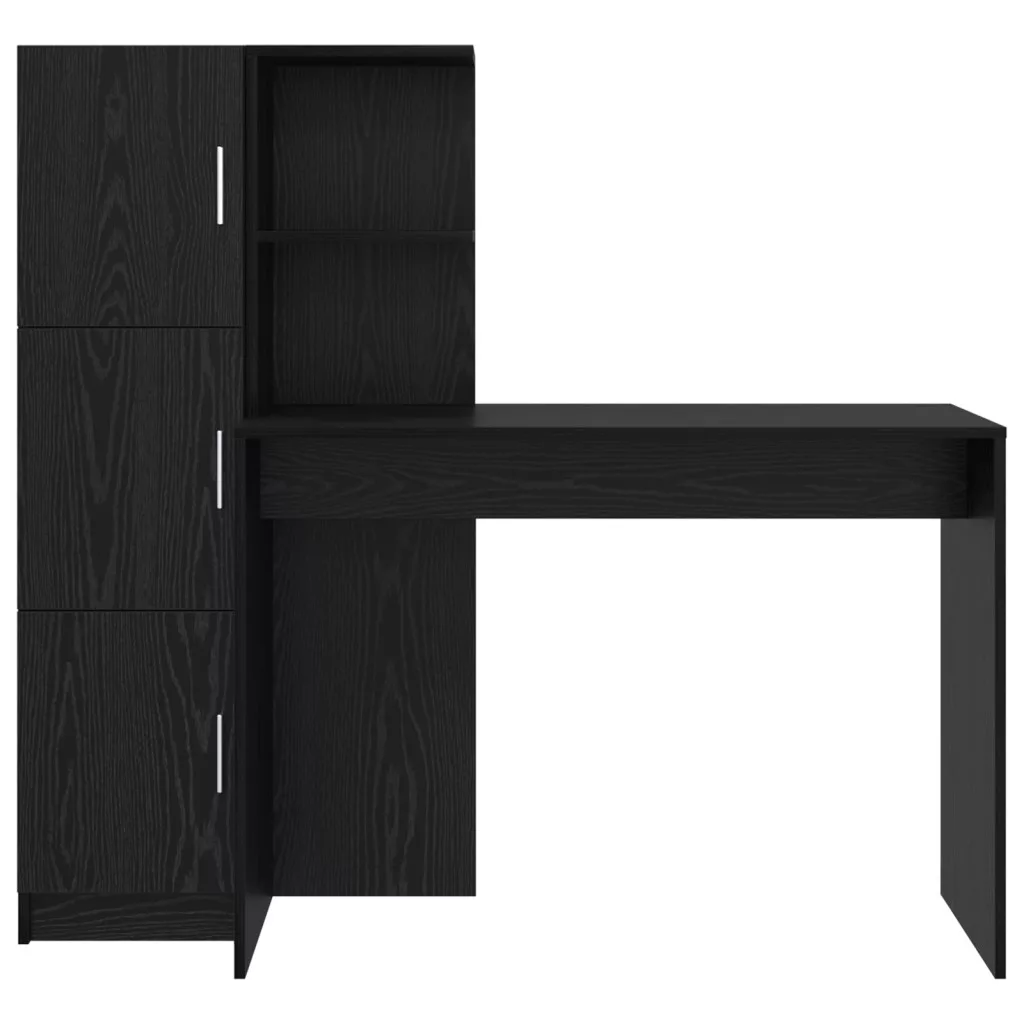Tárolós Íróasztal Fekete Tölgy Szerelt Fa