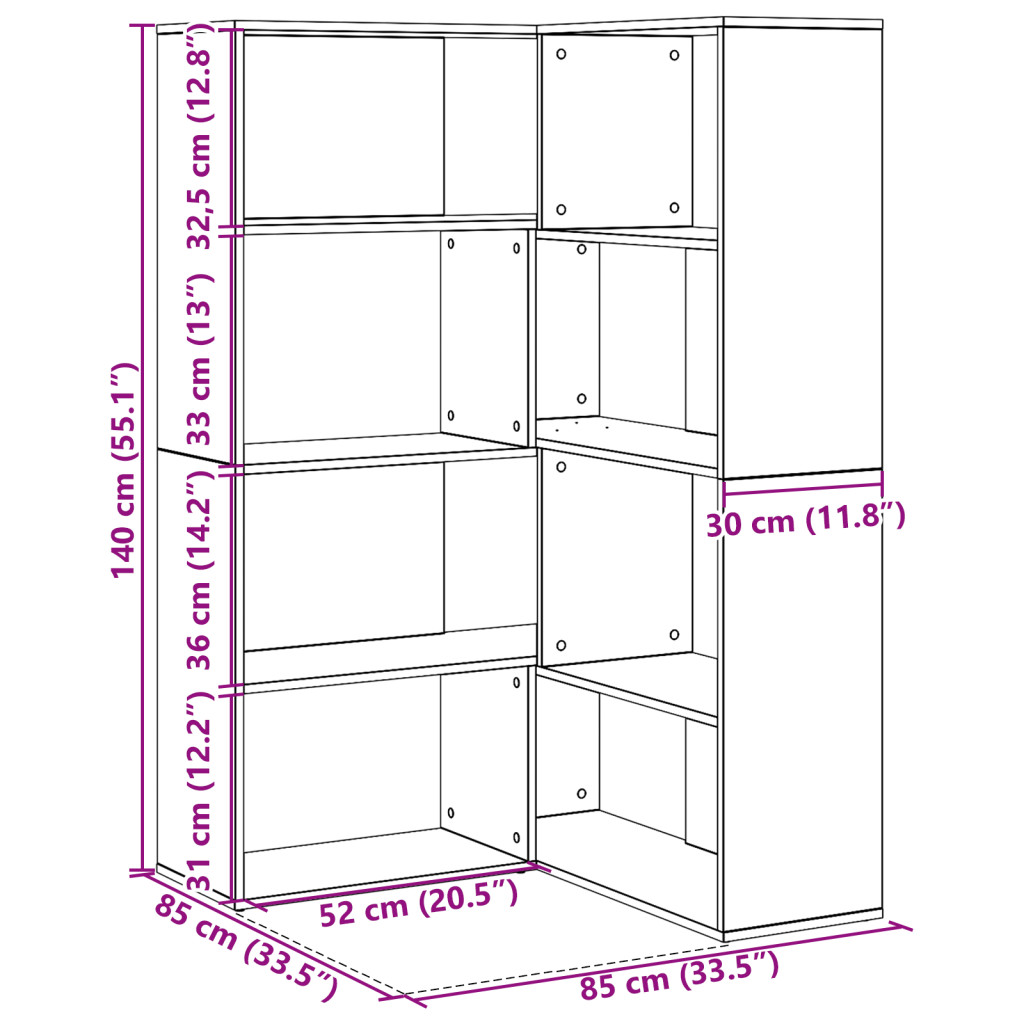 Sarokszekrény Fekete Tölgy 140x30x140 cm Műgyanta