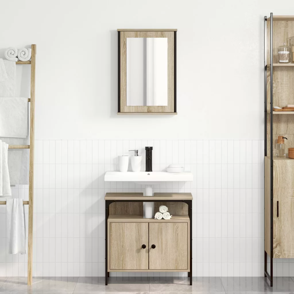 2 darabos fürdőszoba kabinet szett világos tölgy szerelt fával