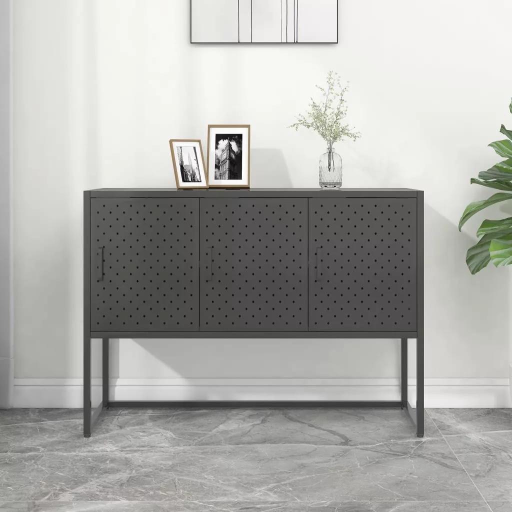 antracitszürke acél tálalószekrény 105 x 35 x 75 cm